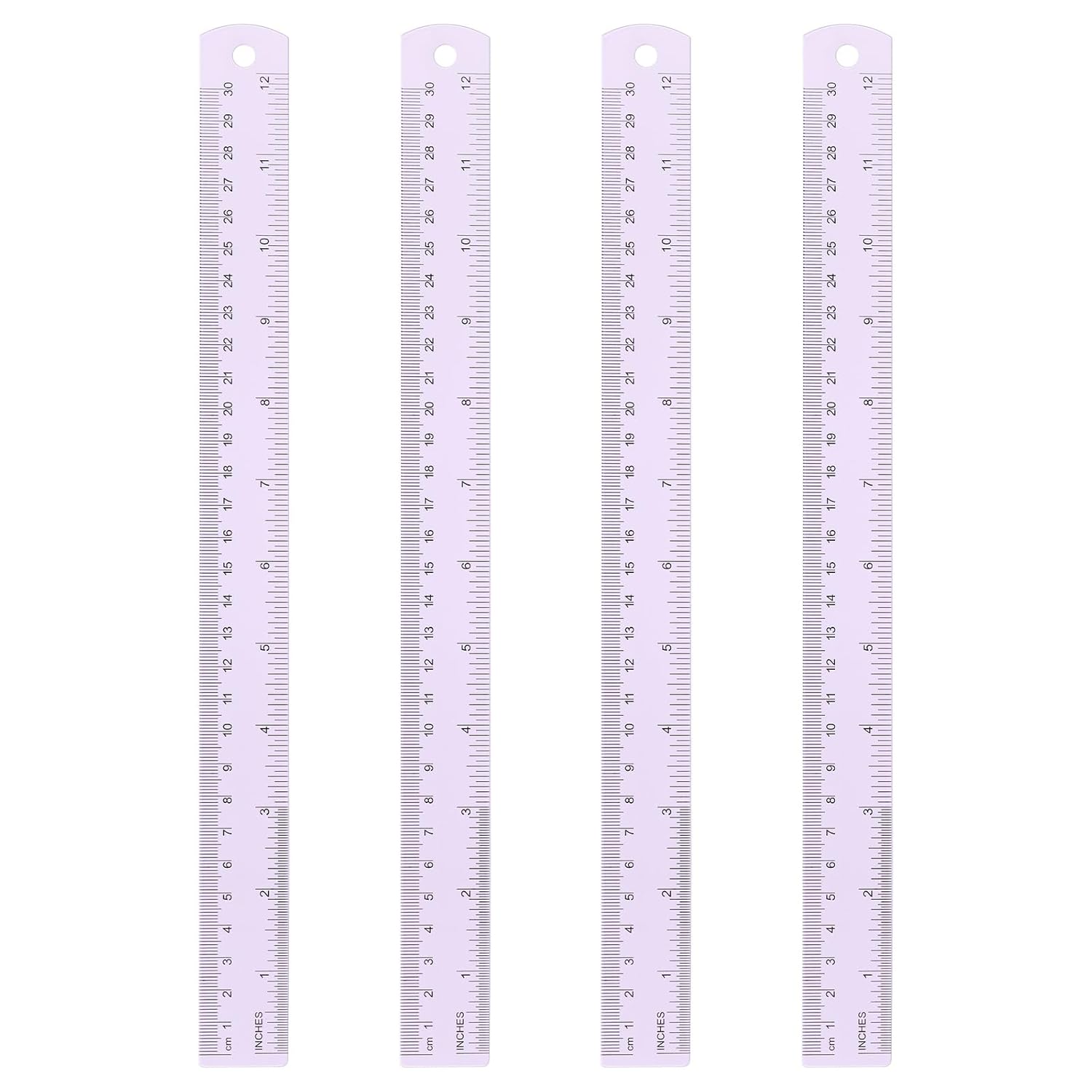 HARFINGTON 4pcs Metal Straight Ruler 30cm Metric SAE Aluminum Alloy Measuring Rulers Scale Tool with Hole for Measure Study Reading Classroom Office, Purple
