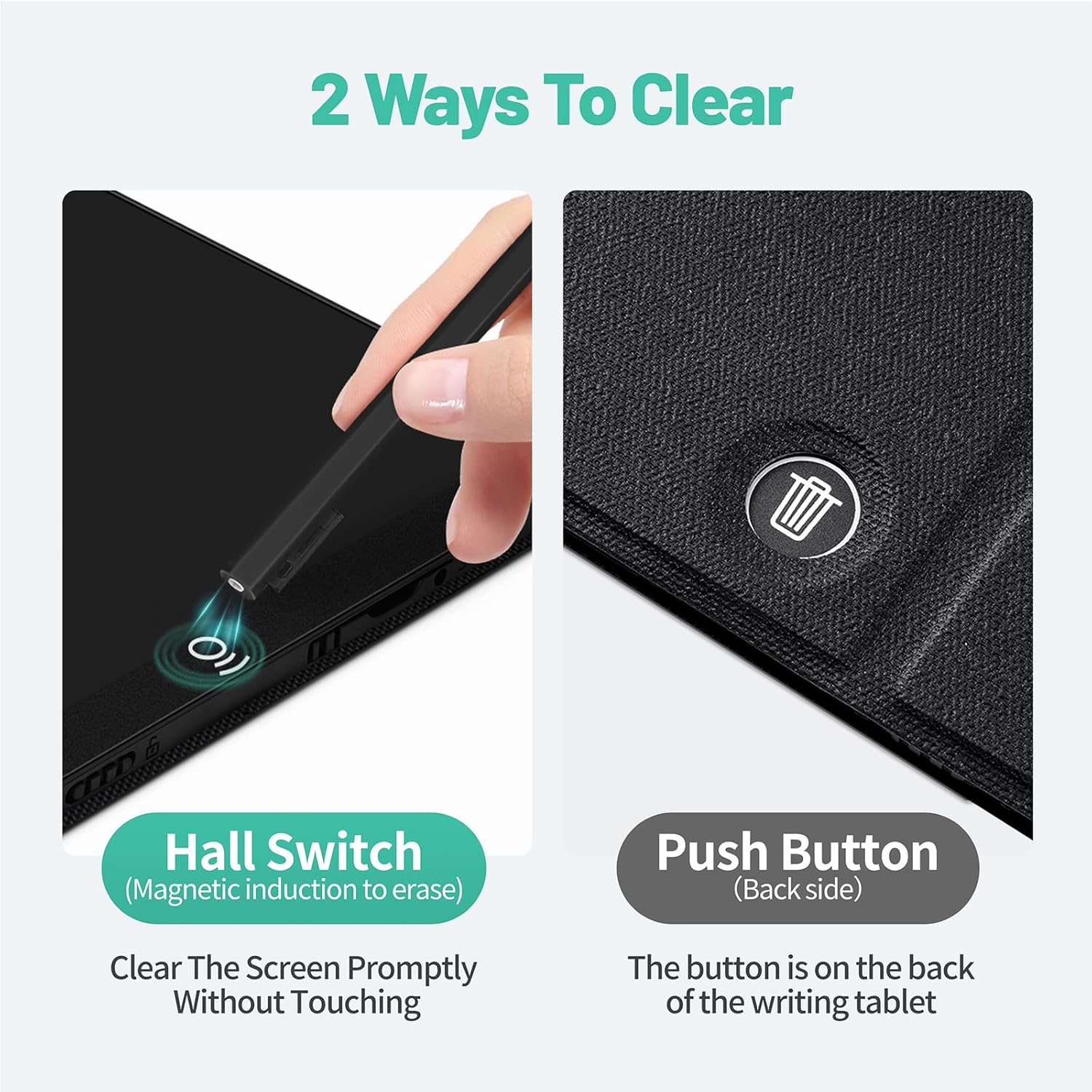 - The writing tablet design non-touch and push erase; Turn on the lock screen button to avoid the recorded message being deleted accidently, and the screen can be erased when the writing pad unlocked
