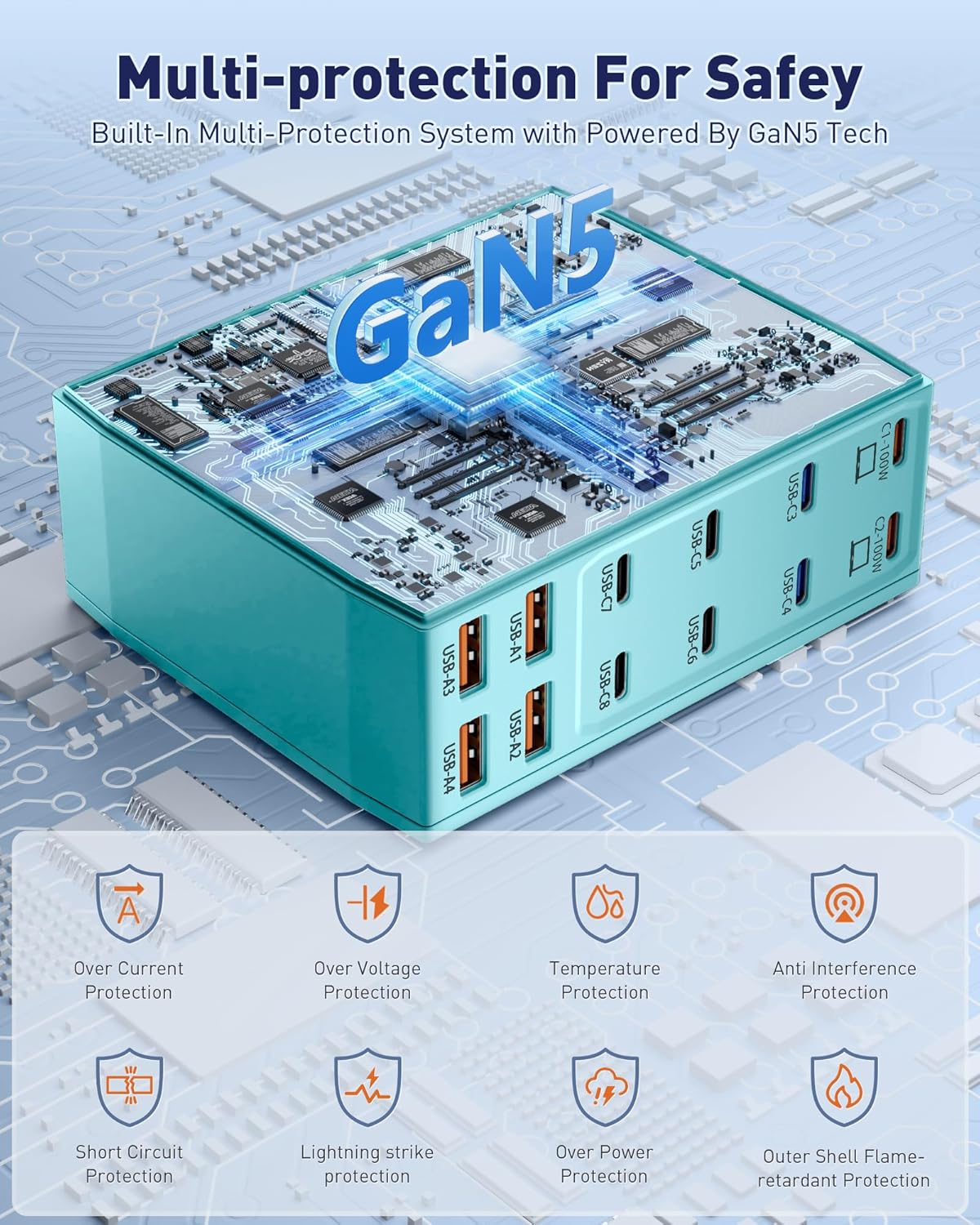 - γ12-in-1 USB C Charging StationγThis 600W USB C Charger Block comes with 8 USB C ports and 4 USB A ports to charge multiple devices, simplify your charging setup, and let you experience the convenience of ultra-fast and ultra-high output charging. With its smart charging technology, it can automatically detect and provide the best power output for each connected device, ensuring fast and efficient charging.