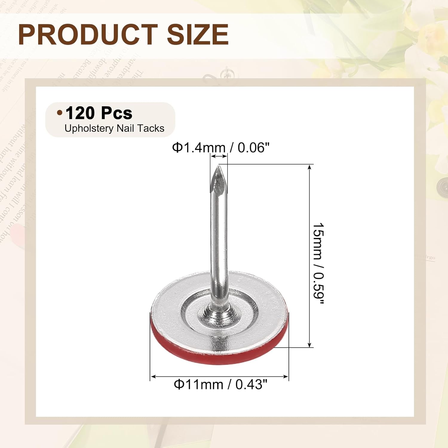 - [Size & Quantity] - The package comes with 120pcs decorative upholstery tacks. Sufficient quantity to meet your different daily needs. The overall size of upholstery nails is about 11mm x 15mm/0.43-inch x 0.59-inch(D*H)