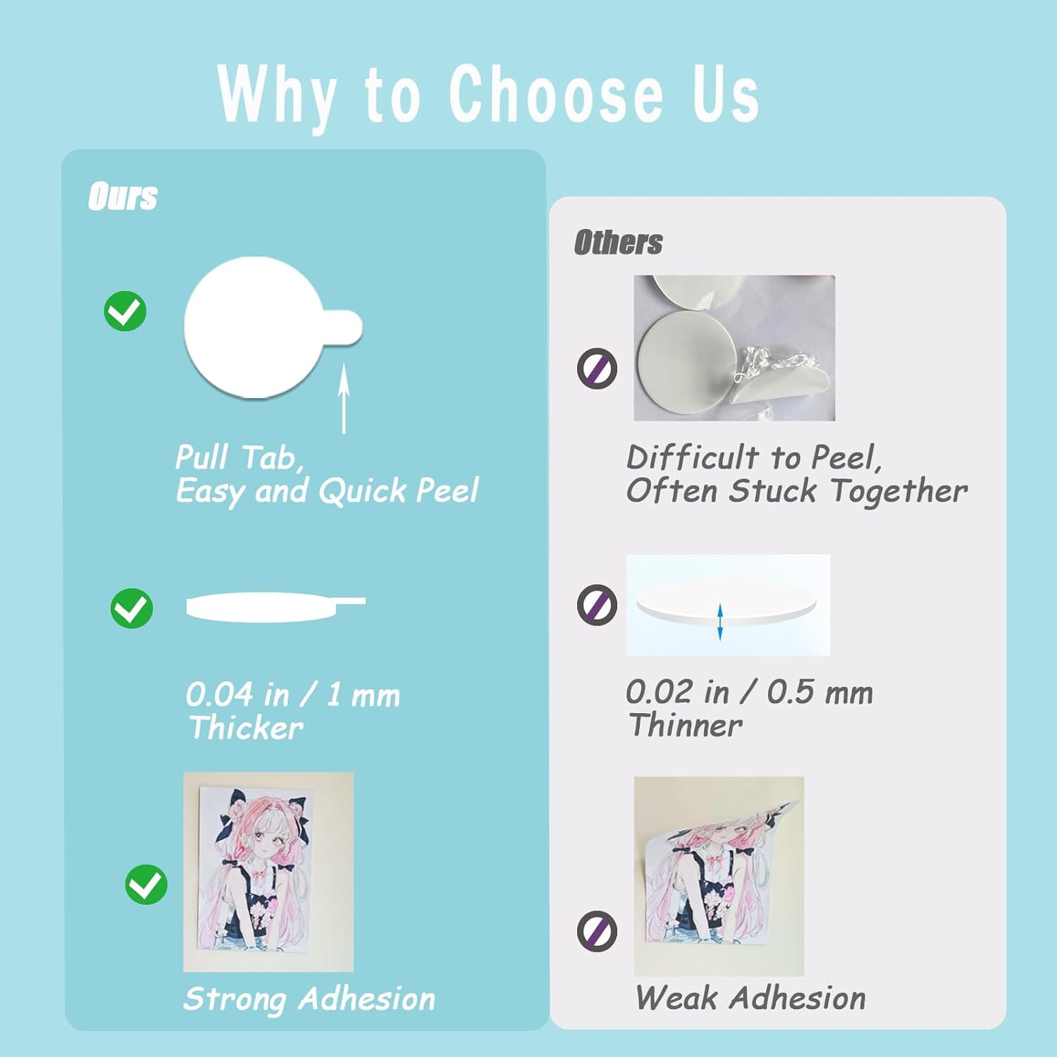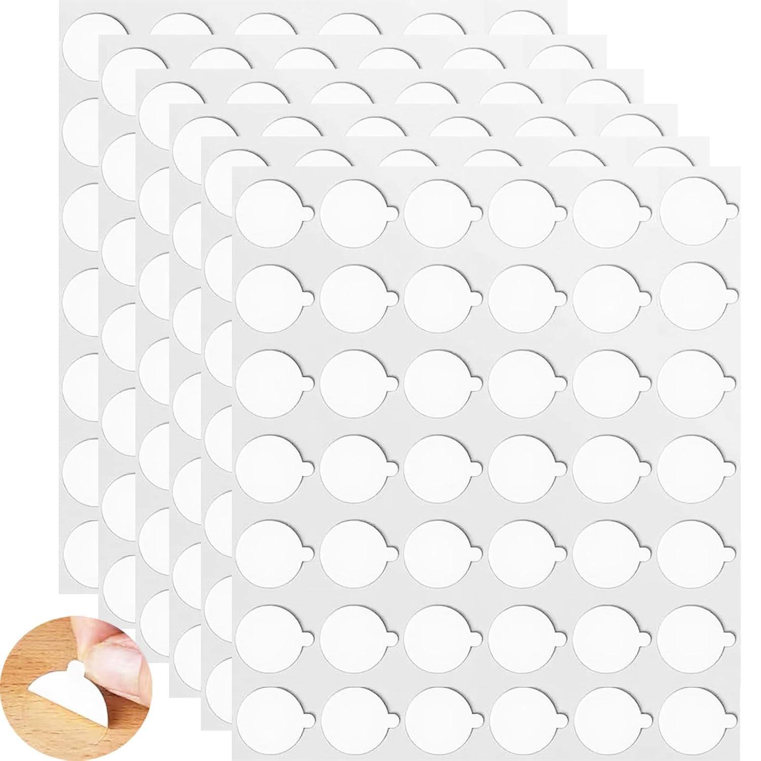 - γUpgraded Handle Design for Easy UseγEach museum putty round sticky tab has a white protective film with an easy-to-grip handle for quick and easy peeling. Simply stick the double-sided sticky dot where needed, peel off the protective film and press to secure. No extra tools, no punching, cutting, etc. required!
