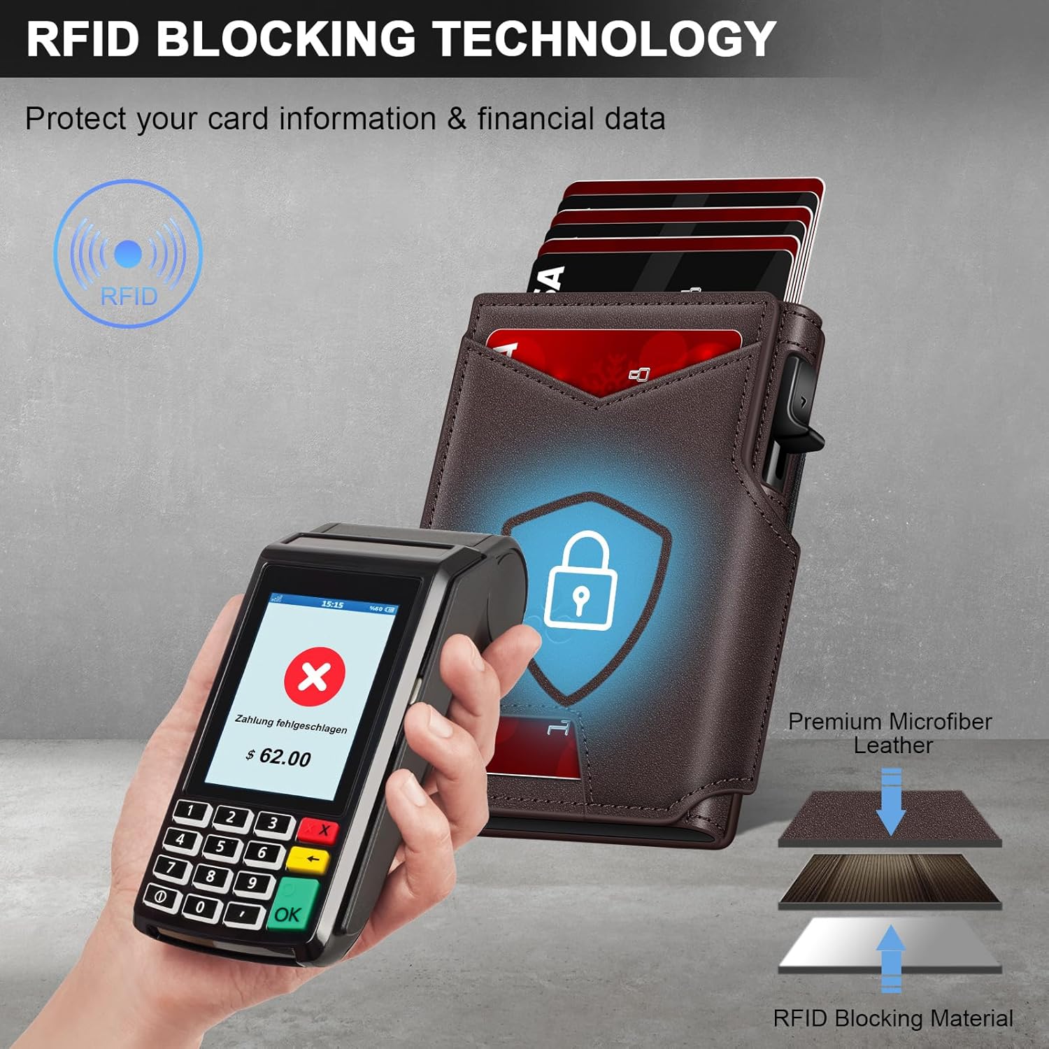 - RFID BLOCKING: The RFID Card holder of this metal wallet for men blocks unauthorized scans of your credit cards, debit cards, and driverβs license, providing maximum protection for your private information.