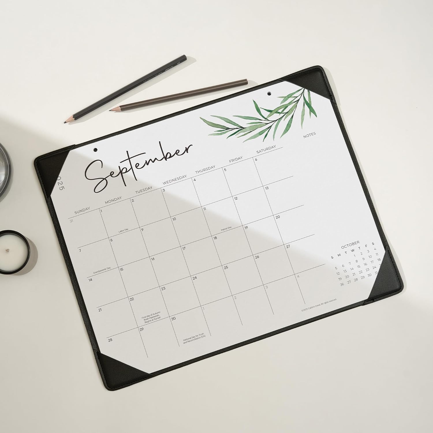 Cabbrix Desk Calendar 2025-2026 with Desktop Mat, 15" x 12" Desk Calendar July 2025 to June 2026, Academic Monthly Calendar for Home Office School Planning, Greenery