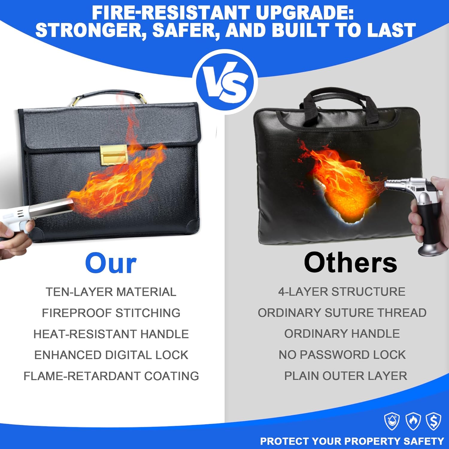 - 👜【Large Capacity - Space size: 14.2x10x2.3inches】Our Large fire proof bag for documents,can hold large folders,laptops,legal documents,from birth certificates and tax documents to insurance paperwork,contracts,valuables and more,Keep things tidy and organized.Maximise space for easy access to items.