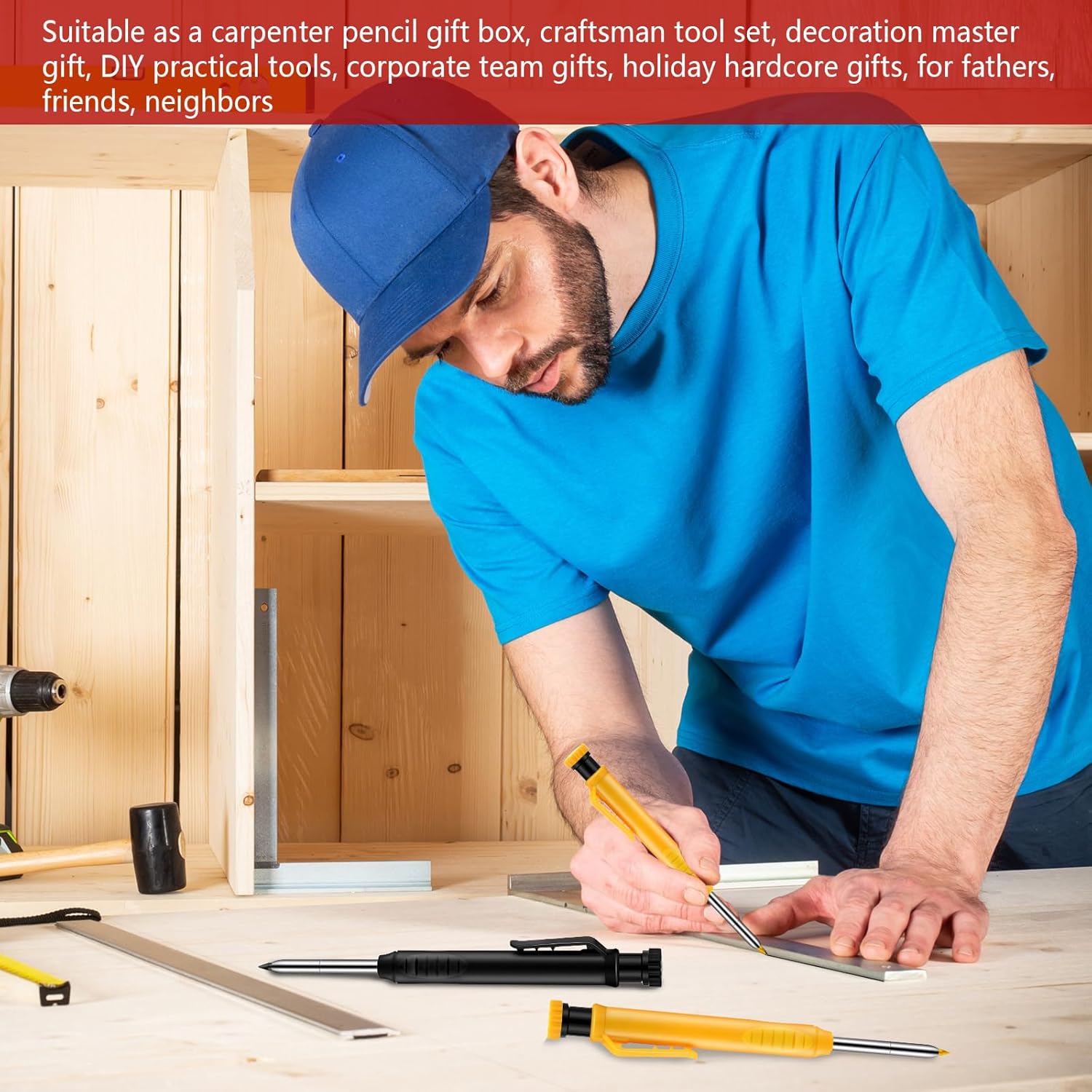 - Comfortable and Ergonomic Grip: the mechanical construction pencil is designed with a comfortable grip, which is comfortable to hold; The grooves on the body of the pencil provide friction and reduce pain, allowing you to work for long periods of time without discomfort; Our working pencils are the good tool for professionals and carpenters such as bricklayers and tilers, allowing you to focus on your work without feeling any stress; Ideal for marking cuts, sketching and rendering