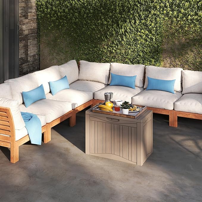 - Large Capacity for Versatile Storage:With a 28-gallon capacity and a 150-pound weight limit, it provides ample storage for outdoor cushions, garden tools, or camping gear and can also be used as a seating option or a table.