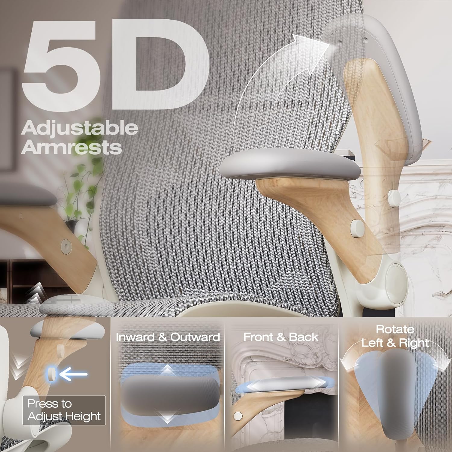 ELABEST X100 Ergonomic Office Chair with Footrest, Big and Tall Home Desk Chair with 5D Flip-Up Arms, Adjustable 7D Lumbar Support,High Back Rolling Computer Chair, Swivel Mesh Chairs (Foggy Morning)
