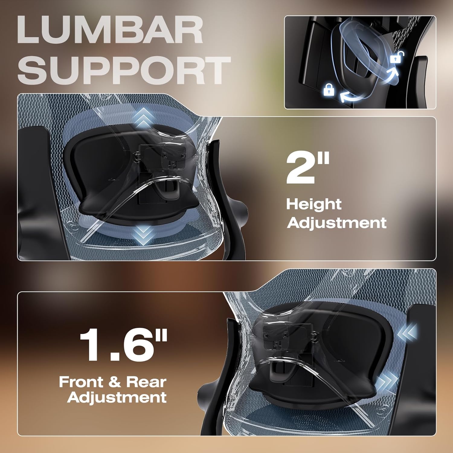 - γEngineered with Dynamic Spinal Alignment Systemγ3D Synchro-Tilt LumbarοΌLockable Β±1.6" depth spring-loaded auto-tracking/Β±2" height/15Β° rotationοΌwith force-sensitive springs mimics natural spine curvature, certified by AEP* for 12hrs+ fatigue reduction in ergonomic chairs (*American Ergonomics Partnership)