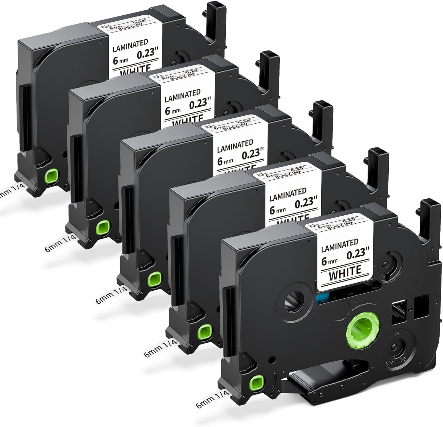 Labelife TZe-211 Label Maker Tape 6mm Compatible with Brother P Touch Label TZe TZ Tape 6mm 0.23 Laminated White 1/4 Inch TZe211 for Ptouch PTD210 PTD220 PTH110 PTD400 PTD600, 5-Pack
