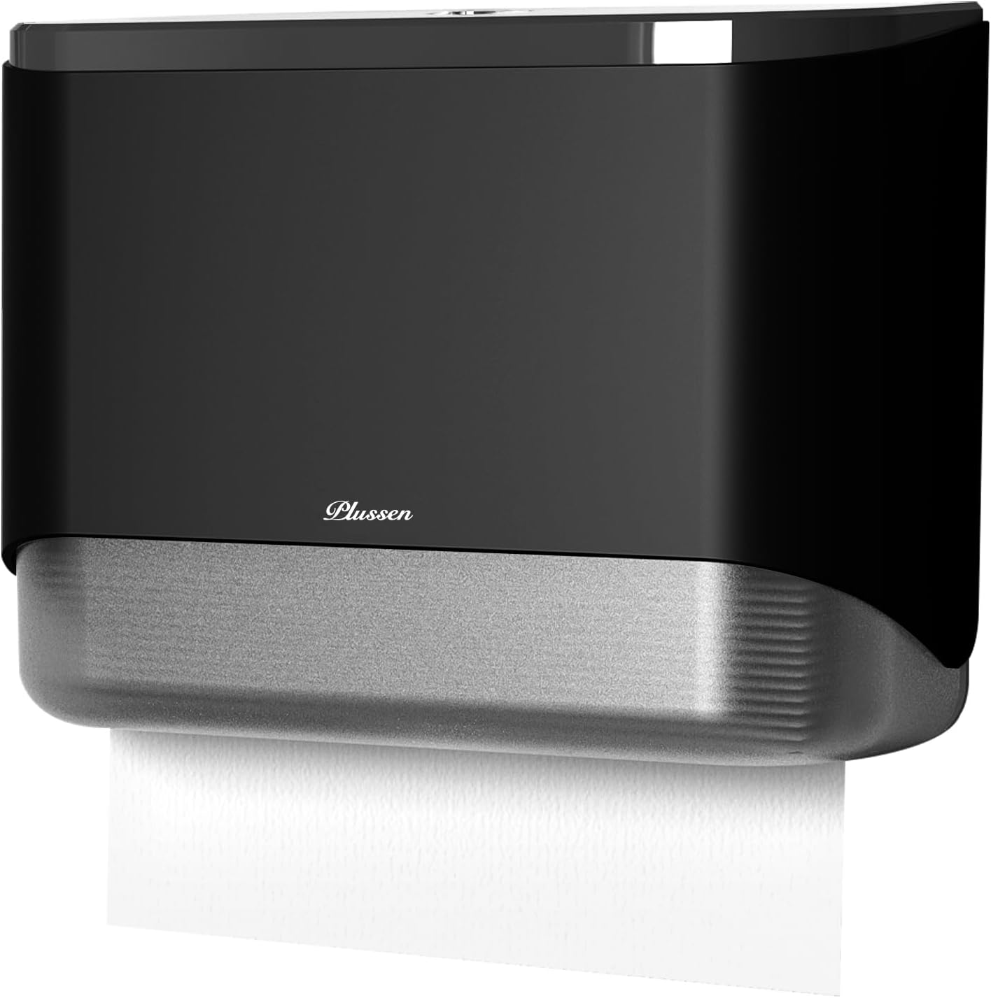 Paper Towel Dispenser Wall Mount, Adhesive No Drilling Multifold Trifold Cfold Commercial Hand Towel Dispenser (Black-PN6012)