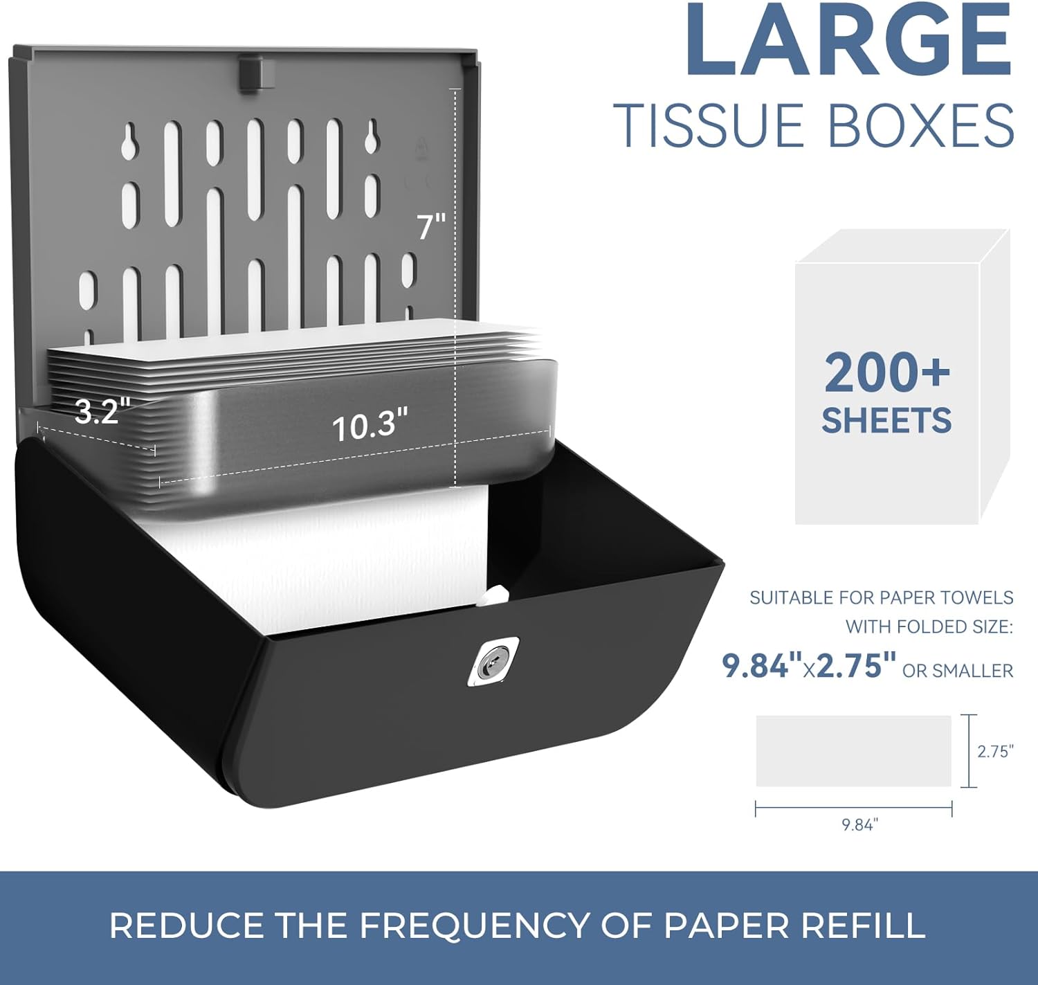 - Large Capacity -- our economical folded paper towel holder can hold up to 200 paper towels, which is very suitable for public places.