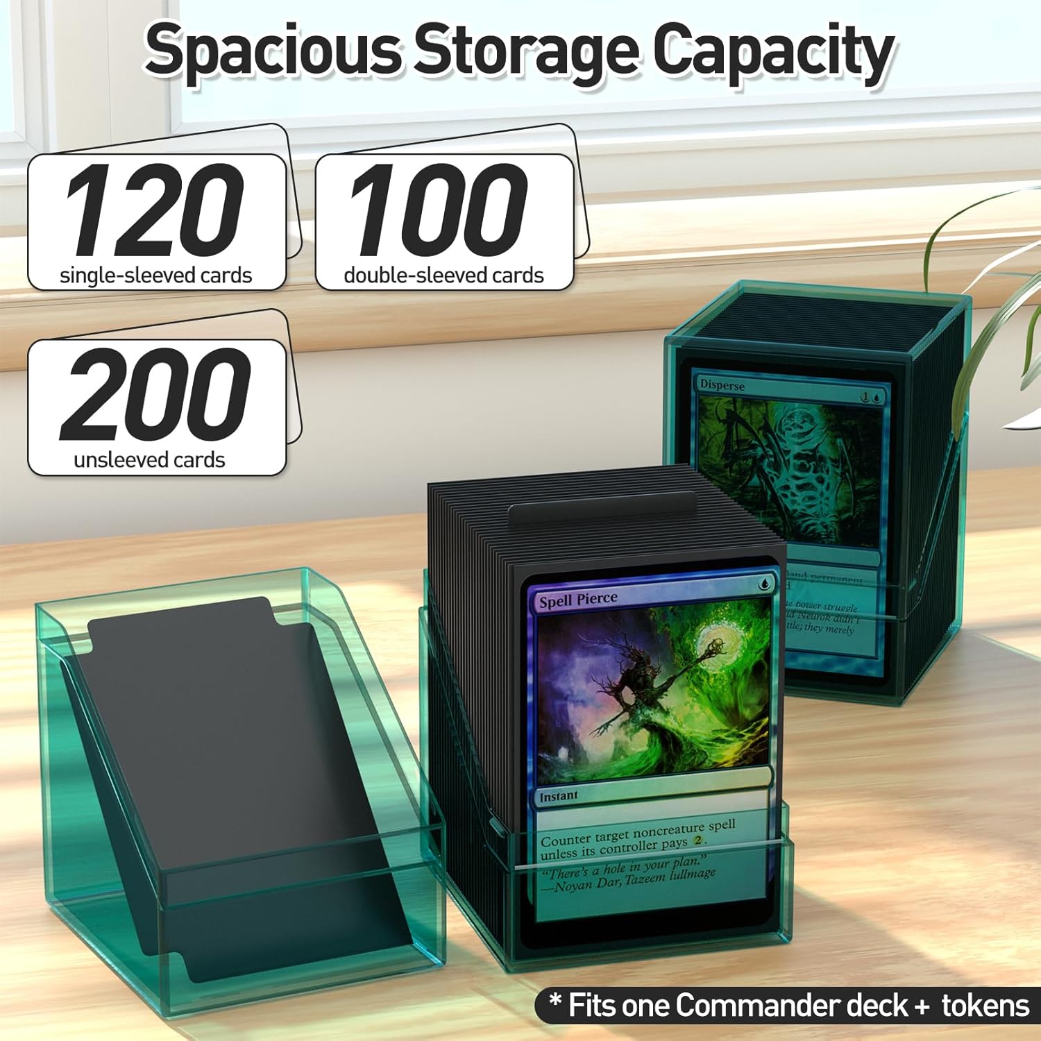- 【Ample Capacity】Each commander deck box holds up to 100 double-sleeved or 120 single-sleeved cards. Designed for efficiency and convenience, this card deck box is ideal for organizing your commander decks or building multiple game-ready tcg card box sets.