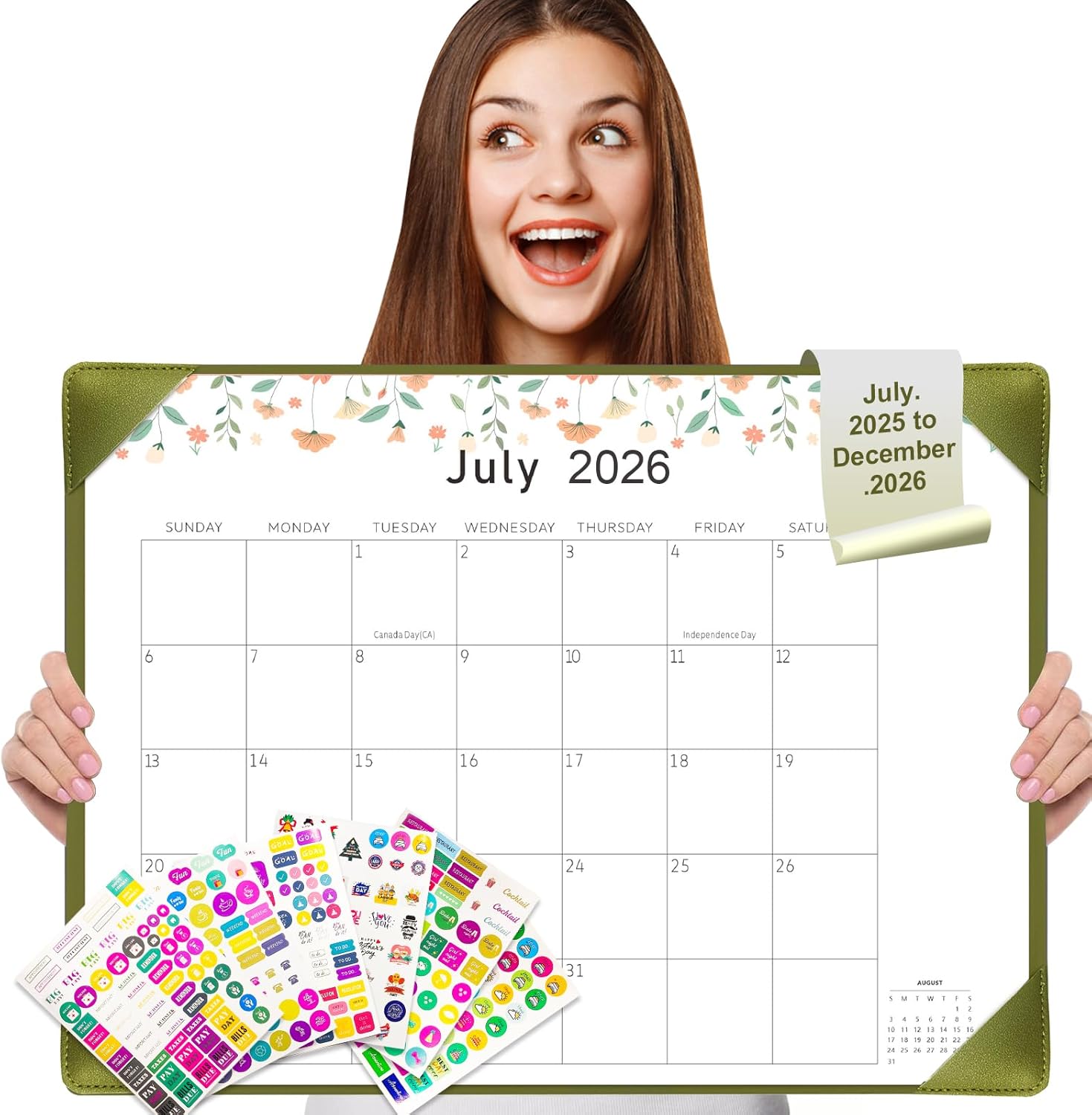 - πγDesk Calendar 2025-2026γ18 months yealy desk calendar with 6 stickers, from July 2025 to Dec 2026. 22" x 17", Pages including daily blocks, notes, US holiday reminders, to help you plan and organize office, school and family work efficiently.