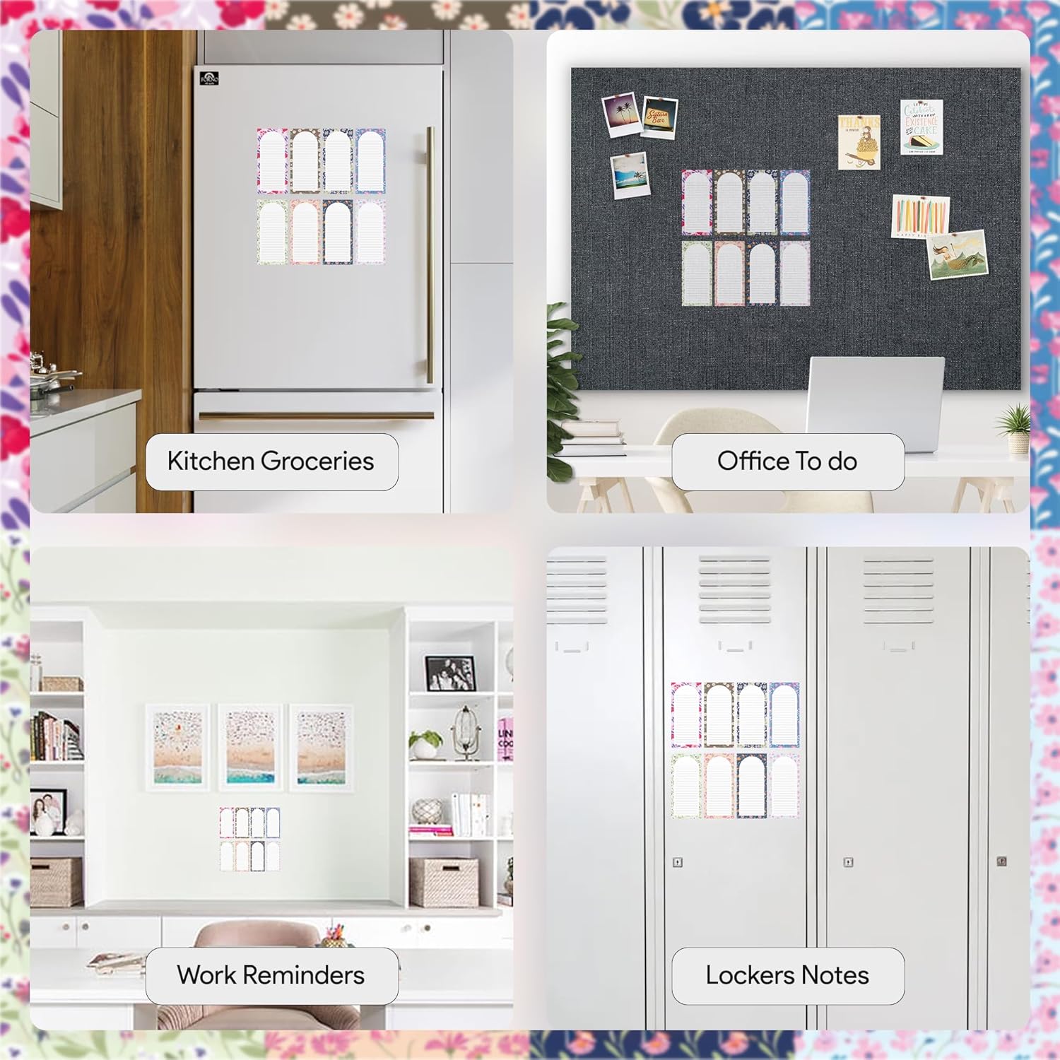 Magnetic Notepads – Notepads for Grocery List, Shopping List, To-Do List, Reminders -Strong Magnetic Back- Memo Notepad | 8 pack Medium | Floral Style
