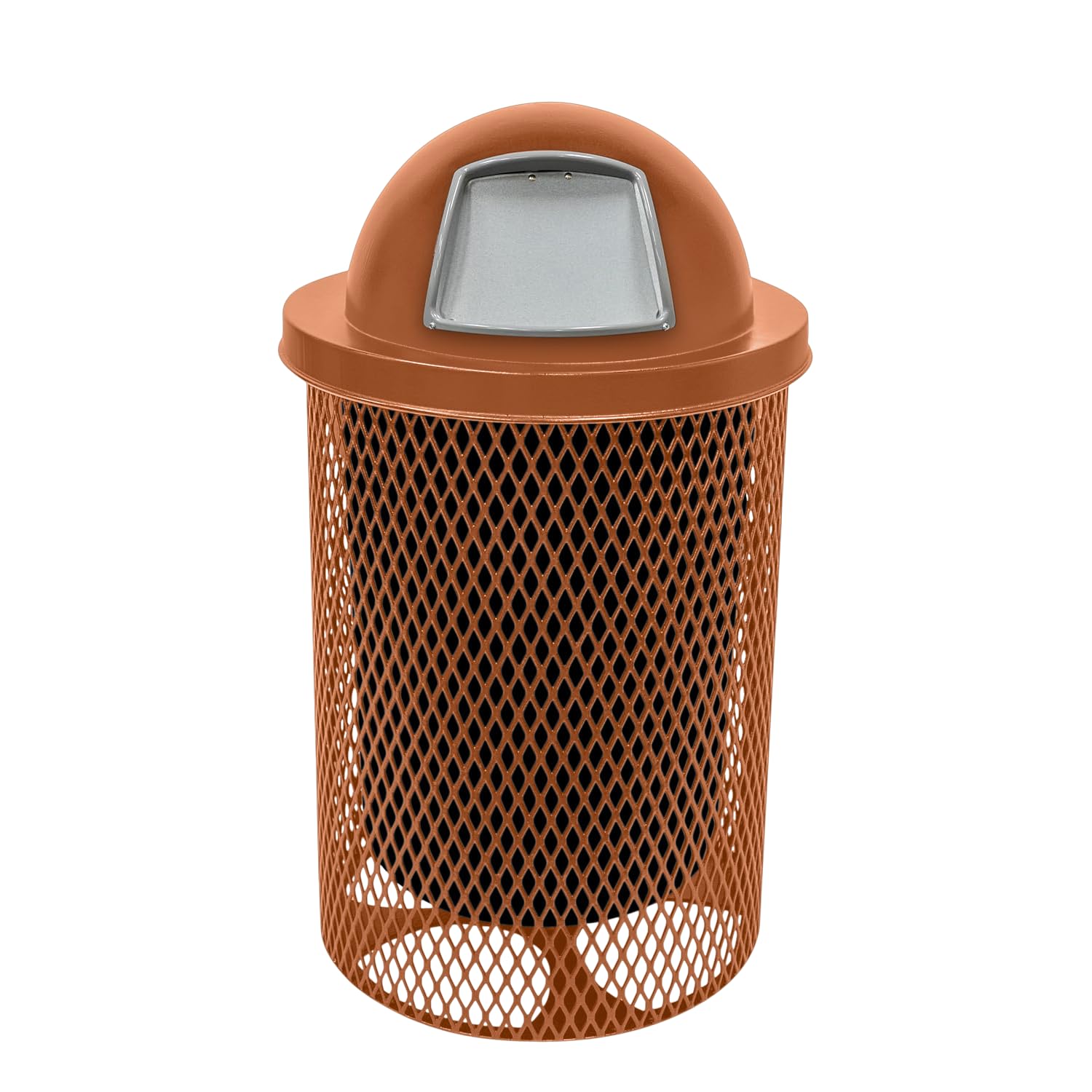 32-Gallon Heavy-Duty Expanded Metal Round Trash Receptacle, Commercial Outdoor Waste Bin with Liner & Black Dome Lid – Made in America (Textured Copper)