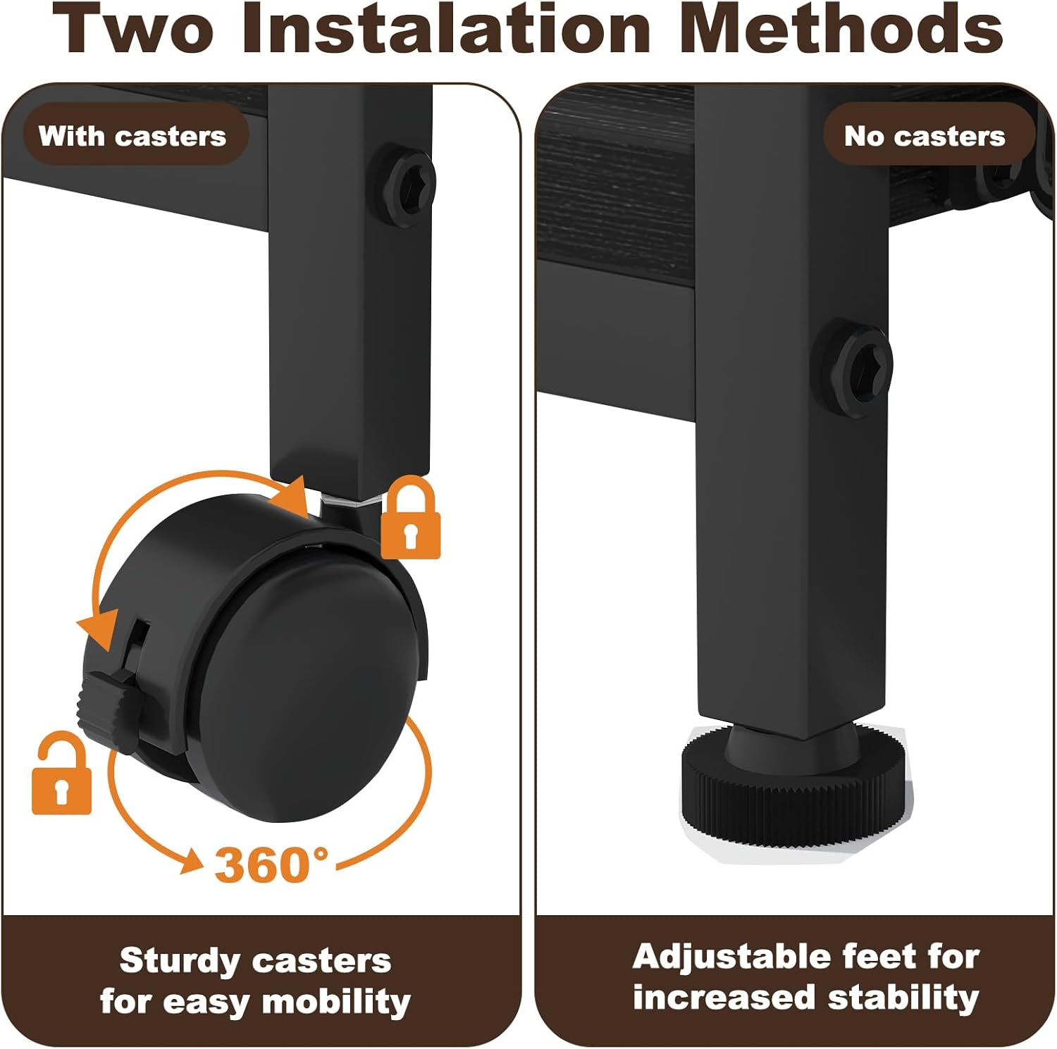 - Two Installation OptionsοΌThe printer table can be used with or without wheels.Not only does it make it easy to move the printer around without having to manually lift it, but it also makes it easy to clean underneath the printer stand.
