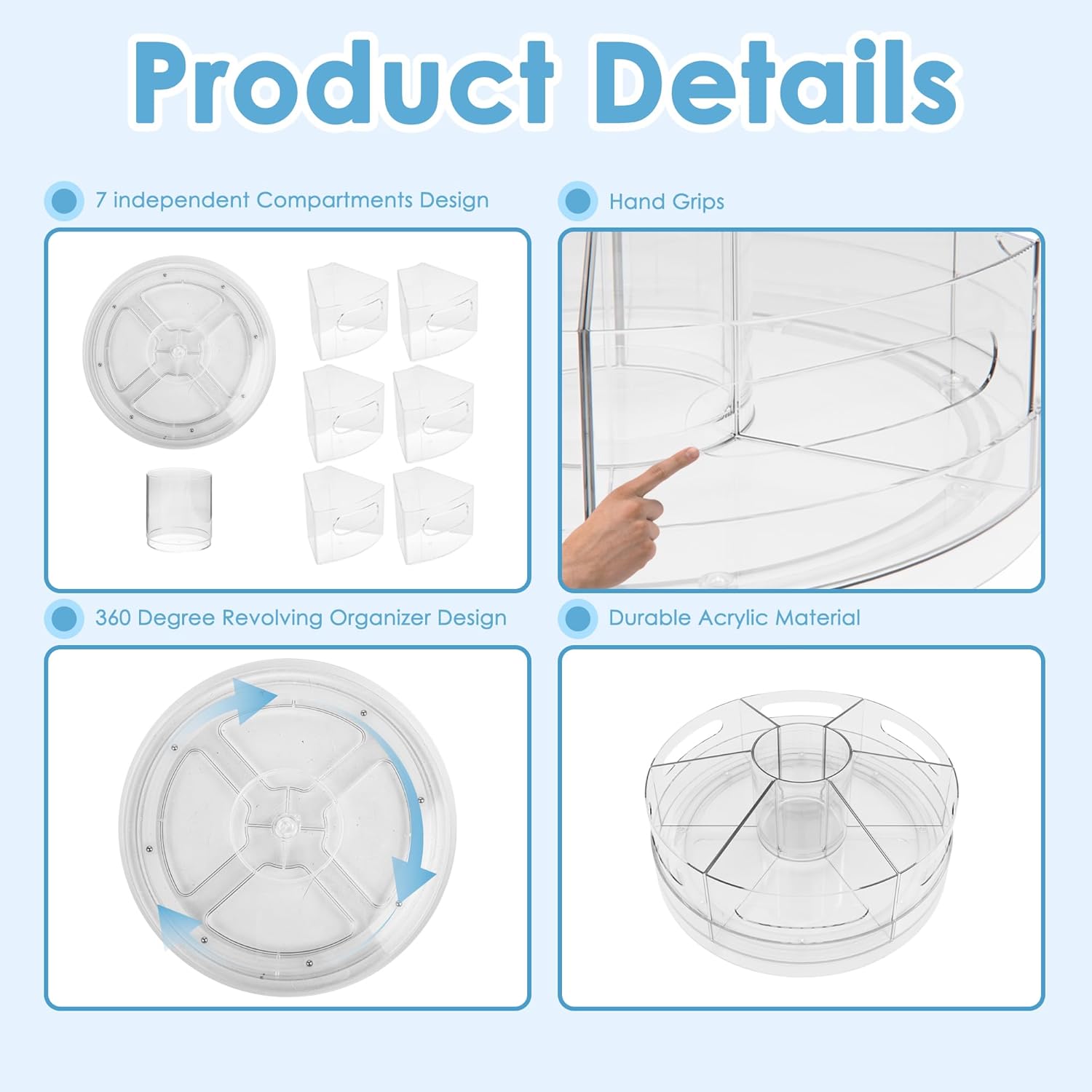2 Packs Pen Organizer for Desk - Acrylic Pen Holder with Hand Grips, 360° Extra Large Rotating Desk Organizer with 7 Removable Compartments for Office, Home, and Makeup Storage