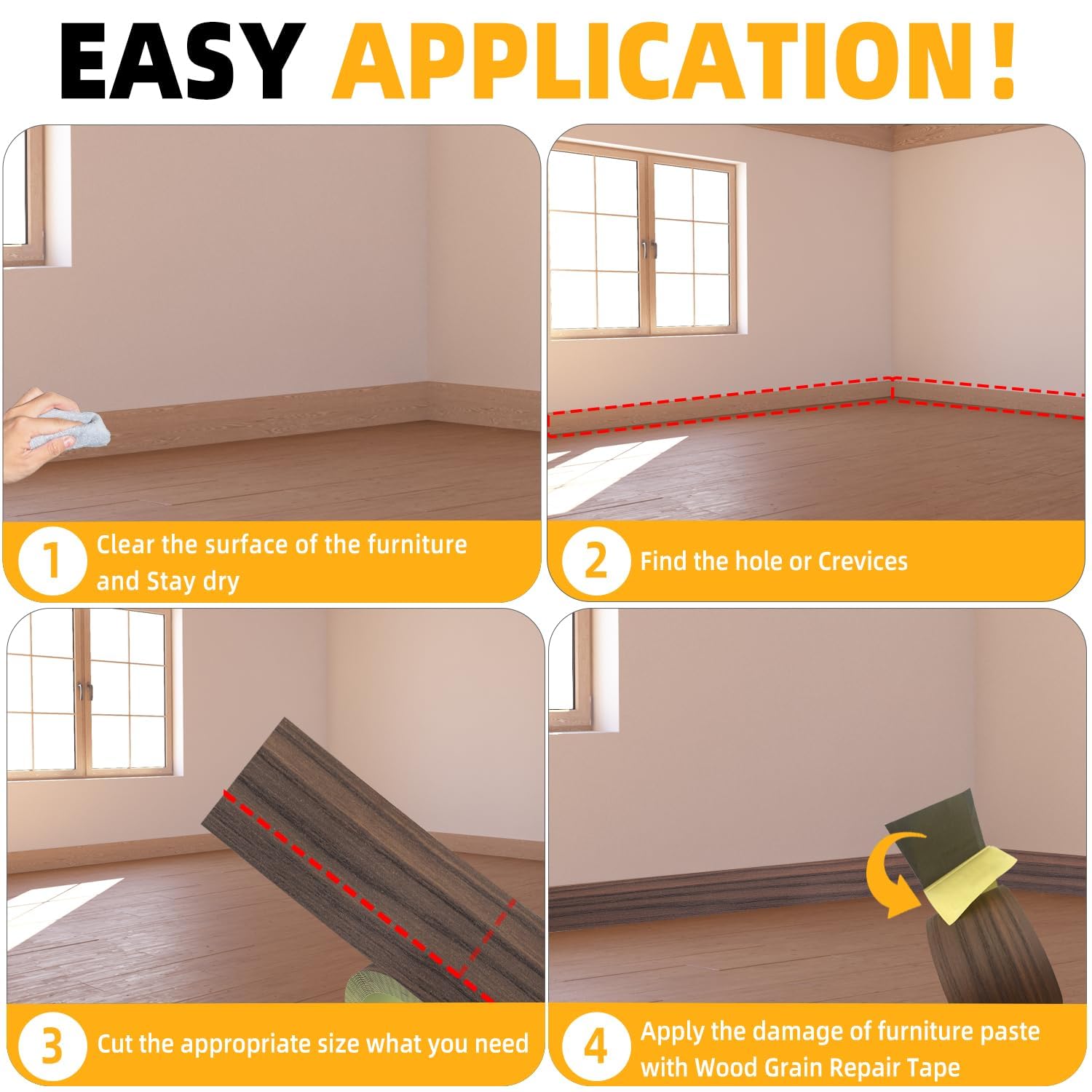 - √【HIGH QUALITY】- The Wood Grain Repair Tape is made of high quality Self Adhesive, which is durable and elastic, with a smooth surface and not easy to be dirty.When you repair Tables, Chairs, Baseboards, Doors, Windows, Floors, All Kinds of Furniture Renovation, Wood Grain Repair Tape will be your first choice.