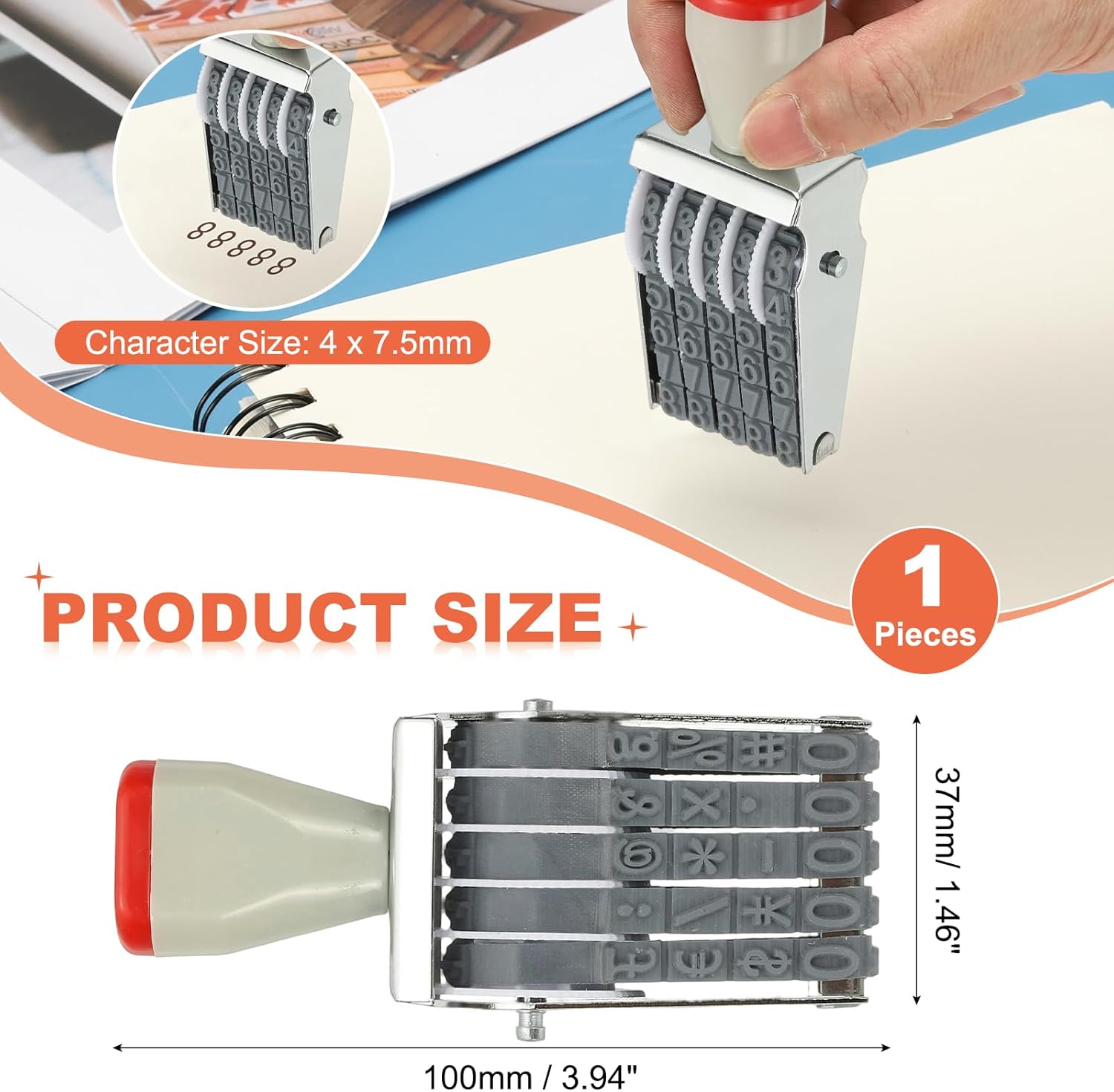 - Advantage: The intuitive dial design lets you change numbers quickly and easily. Use the smooth scroll wheel to easily set up quick custom multi-digit combinations, and start stamping. No complicated setup or tools required. Designed with a durable metal frame and rubber digits, this stamp can be used for a long time. Small and portable, the ergonomic grip ensures comfortable use even during long working hours.