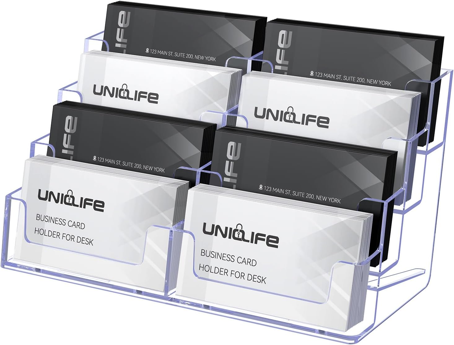 Uniclife Acrylic Business Card Holder for Desk 8 Slots Clear Business Card Display Stand for Men & Women Desktop Business Card Organizer Card Stand for Office Home Exhibition, 480 Card Capacity