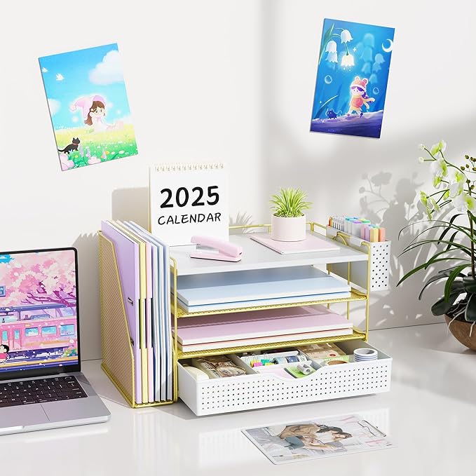 - 【Improve Work Efficiency】: This pen organizer contains 4 trays, 1 magazine rack, 1 pen holder, and 1 sliding drawer, which can help you quickly identify the contents of each compartment, helping to keep papers, notebooks, and office supplies neatly organized and easily accessible., so that you can stay busy and creative all day long.