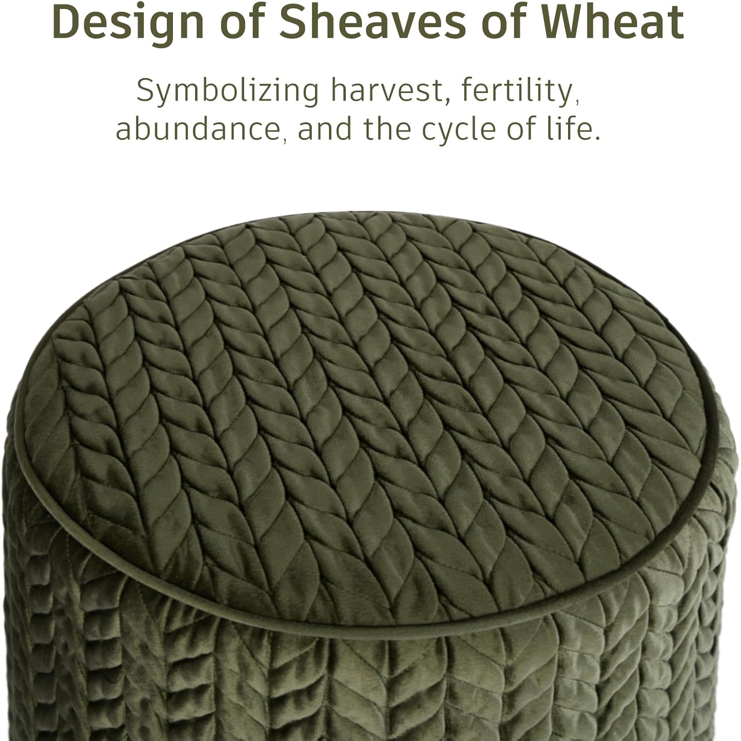 Modern Round Ottoman 2Pcs, Braided-Tufted Foot Stool Ottoman, Velvet Upholstered Vanity Stool for Makeup, Bedroom, Living Room, Dark Green