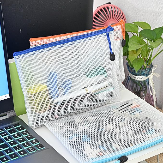 D-KINGCHY 24Pcs Zipper Storage Bags, Plastic Mesh Zippered Pouch for Organization, Waterproof Versatile Bags for Office Supplies School Travel