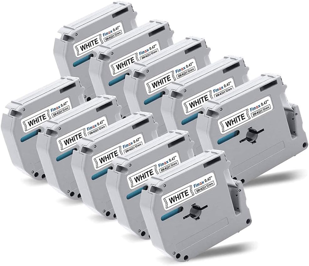 Fimax Replacement for Brother P Touch M Tape M231 MK231 MK-231 12mm 0.47 Inch to use with Brother PTouch PT-M95 PT-90 PT-70 PT-65 PT-85, Black on White, 26.2 Feet, 10-Pack