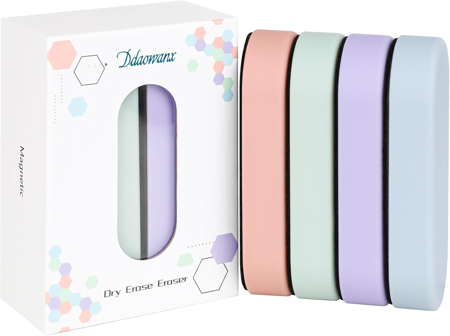 Ddaowanx Dry Erase Erasers, Magnetic Whiteboard Eraser Classroom Must Haves for Students Teachers, School Supplies (4 Pack, 4 Color)