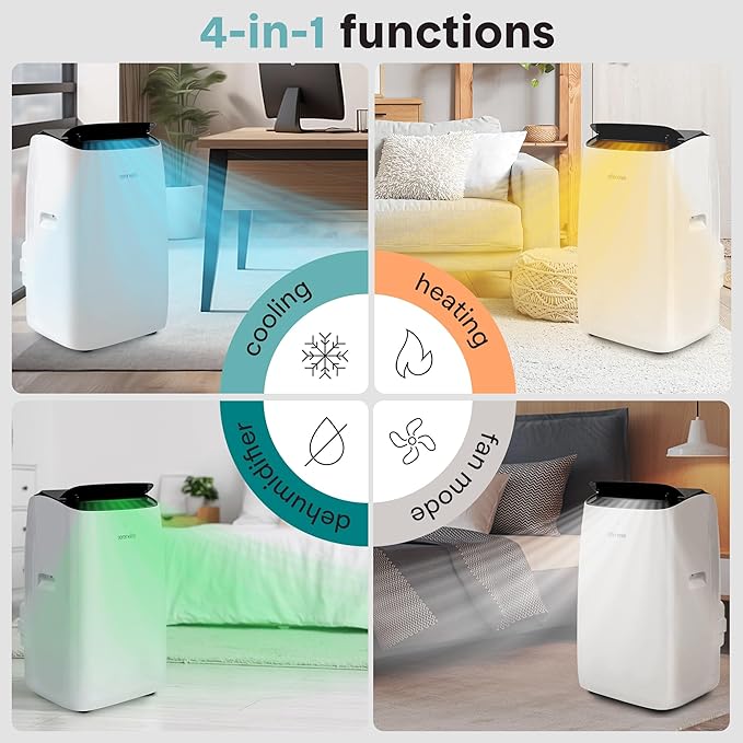 - ALL SEASON COMFORT – Ideal for summer and winter, this inverter portable air conditioner has cooling, heating, dehumidifying, and fan modes. Smart Wi-Fi control allows easy adjustments for year-round comfort while ensuring energy efficiency
