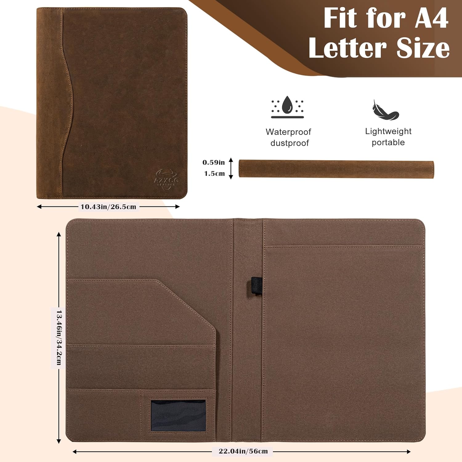 - Ample Storage for Organized EfficiencyοΌThe AZXCG professional folder measures 10.43 x 13.46 inches, providing ample storage space. With plenty of pockets, it accommodates all your essentials for meetingsβdocuments, notepads, pens, and sticky notesβkeeping everything you need for note-taking within easy reach.