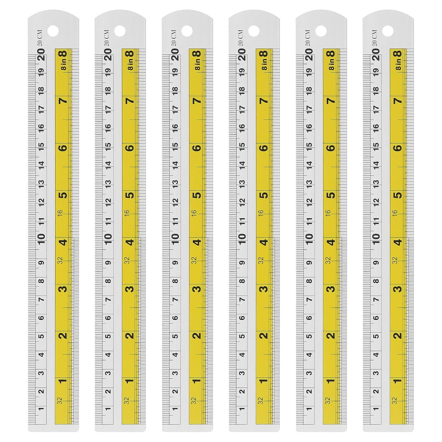 HARFINGTON 6pcs Metal Straight Ruler 20cm Metric SAE Aluminum Alloy Measuring Rulers Scale Tool with Hole for Measure Study Reading Classroom Office, Yellow