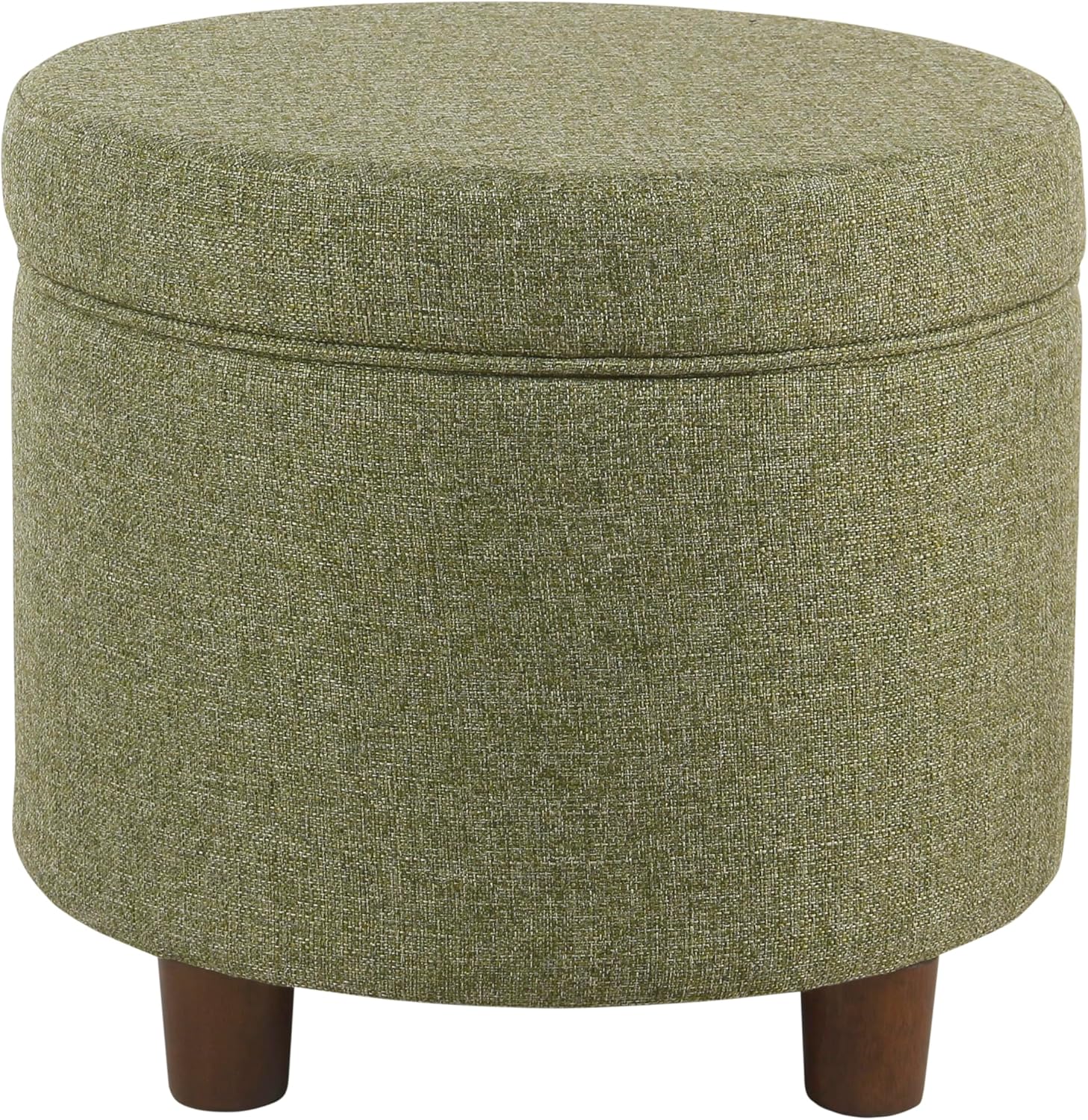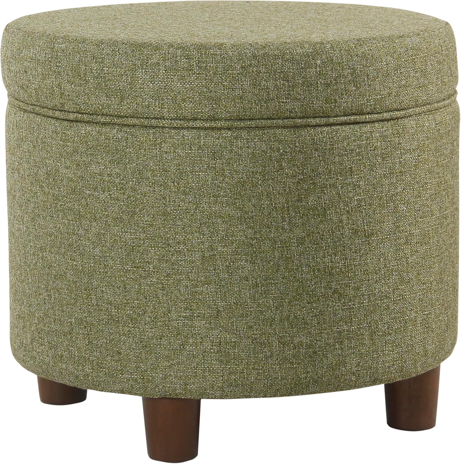 HomePop Home Decor | Upholstered Round Storage Ottoman | Ottoman with Storage for Living Room & Bedroom, Green Tweed
