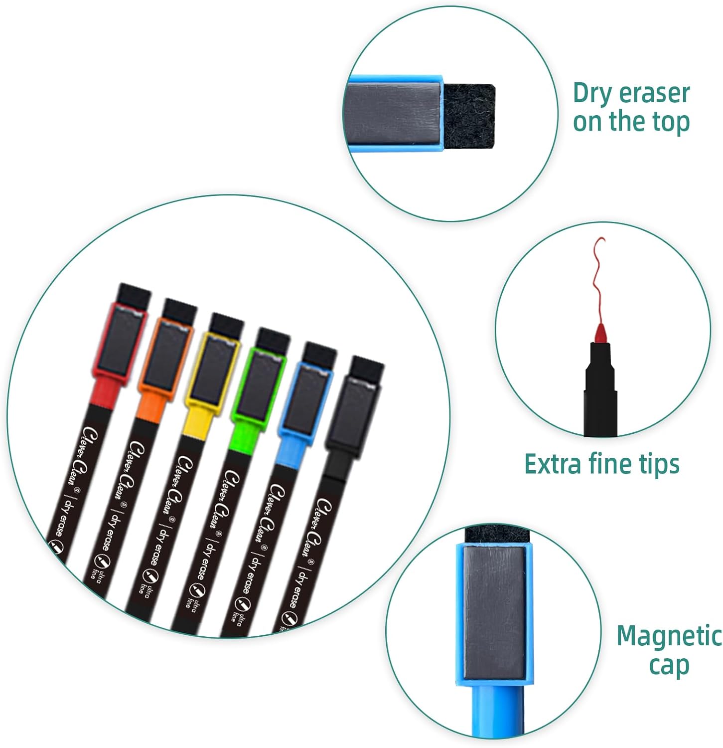 - Fine-point markers included β We also provide 6 extra-fine point markers with different colors, so you may use your own color coding. These magnetic markers stay conveniently attached to your fridge.