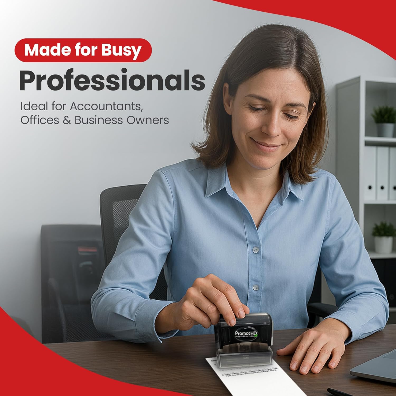 Promot Pre-Inked Custom Deposit Stamp - Personalized Text, Refillable Custom Stamp with Built-in Ink Reservoir, Easy 3-Step Re-Inking, Customized Rubber Stamp for Bank and Businesses (6-Lines)