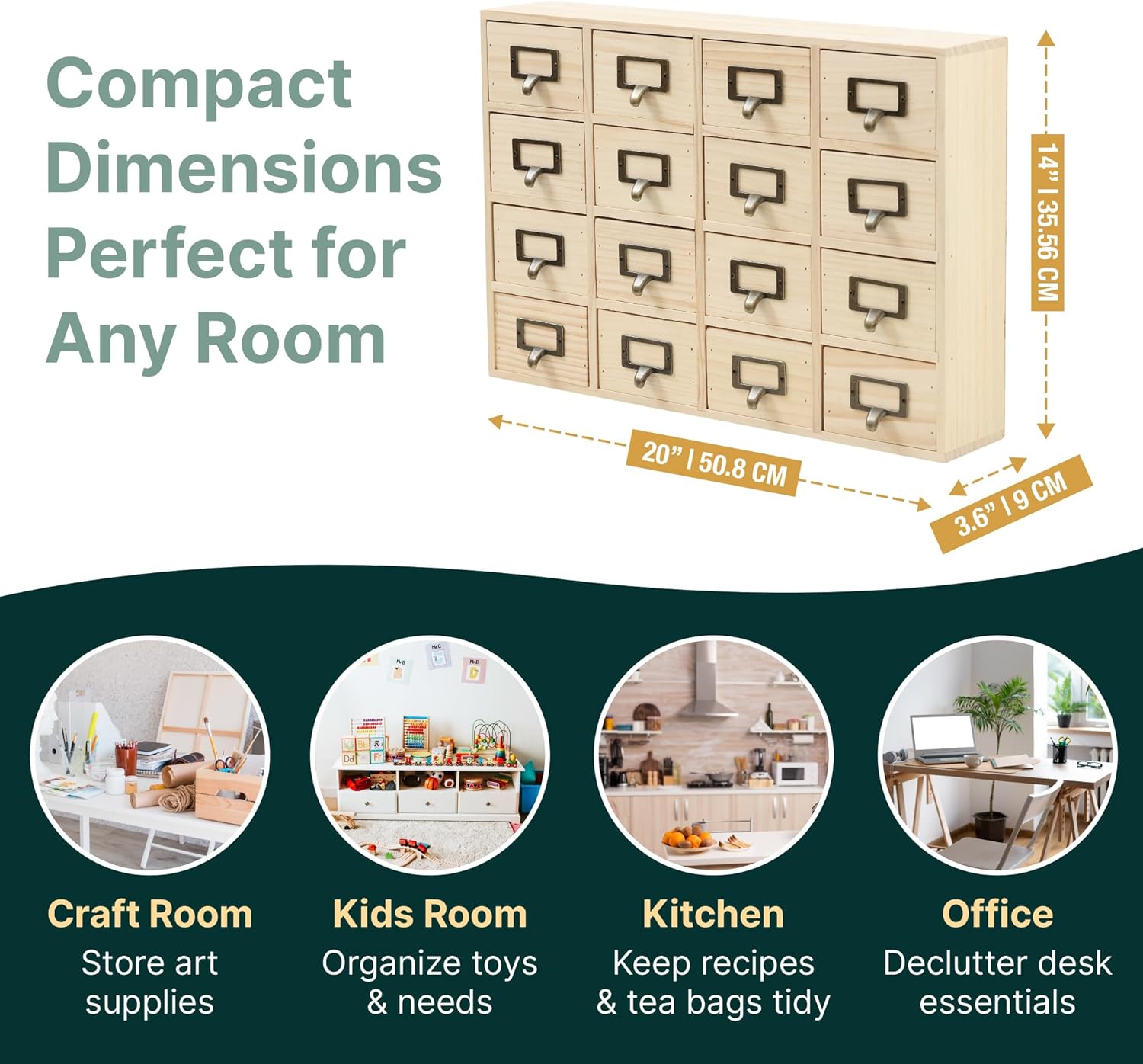 DIY Wooden Desk Organizer with Drawers – Unfinished 16-Drawer Wood Desk Organizer for Crafts, School, or Office – Customizable Wooden Apothecary Cabinet for Creative Storage – Natural Wood Finish