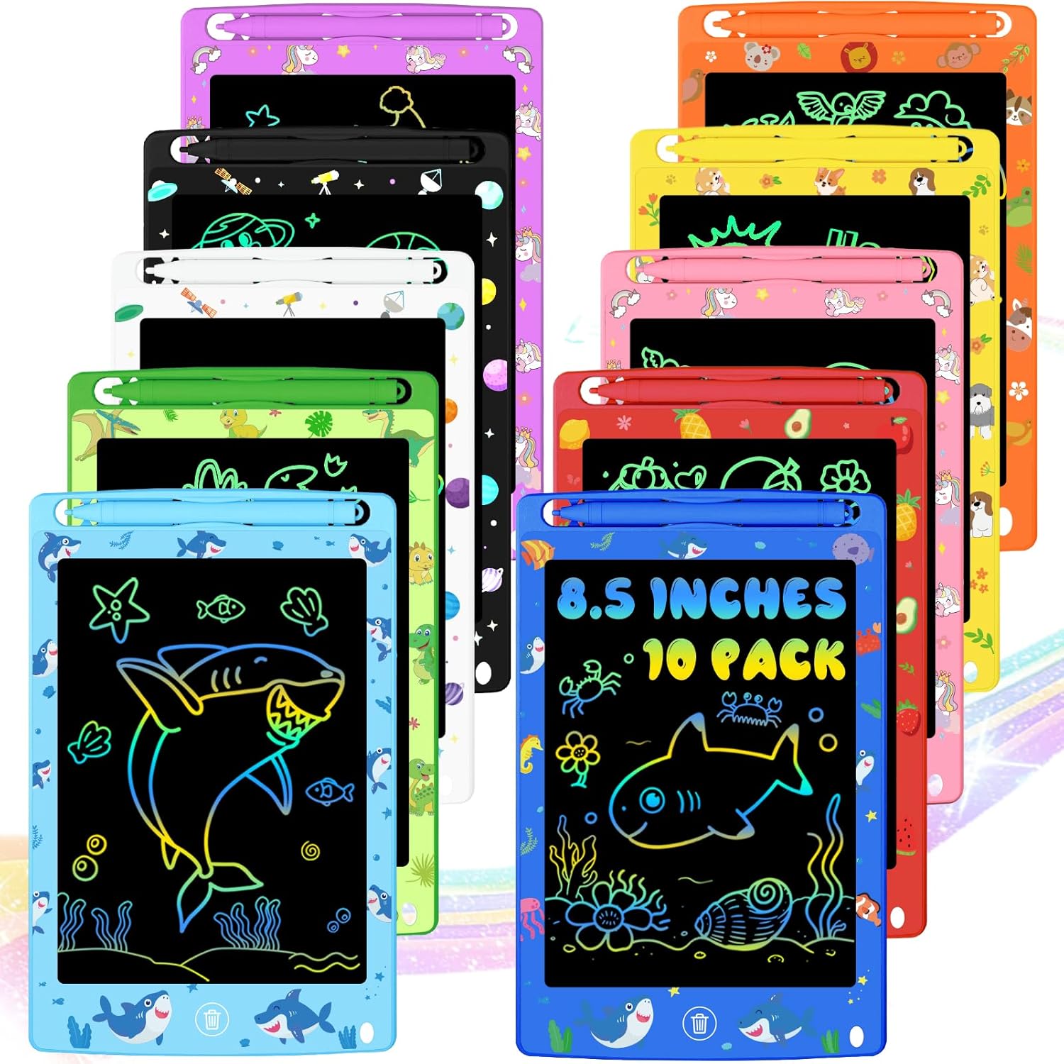 10 Pack LCD Writing Tablet for Kids, 8.5 Inch Colorful Doodle Board Drawing Pad, Educational Learning Travel Toys Birthday Gifts for Boys Girls Age 3 4 5 6 7 8