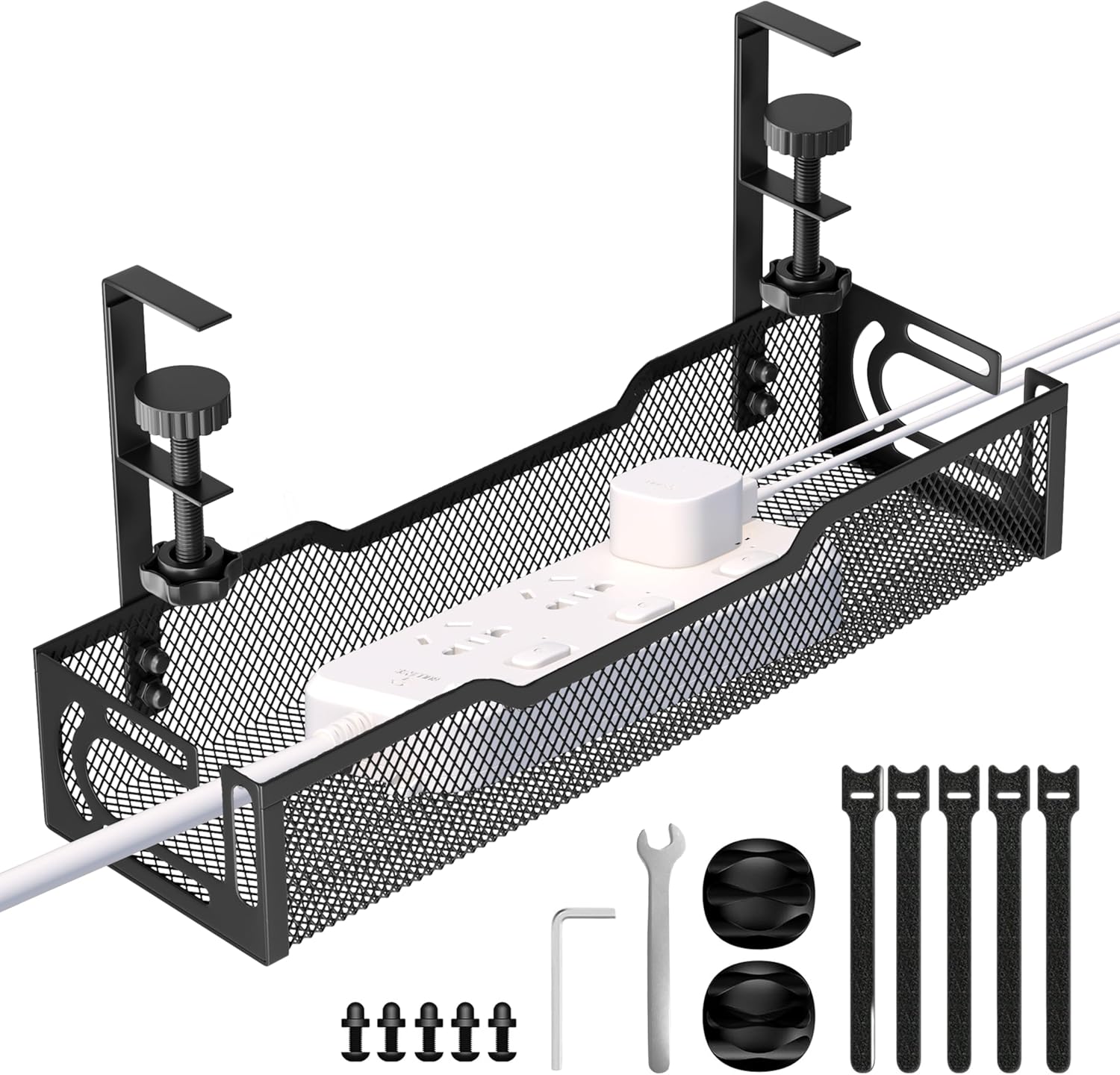 - 【Durable Mesh Structure】Constructed with robust metal and a breathable mesh design, our under-desk cable management tray promotes ventilation to prevent overheating and reduces dust accumulation. This efficient wire organiser not only organises cables safely but also extends the lifespan of your electronics with its resilient framework.