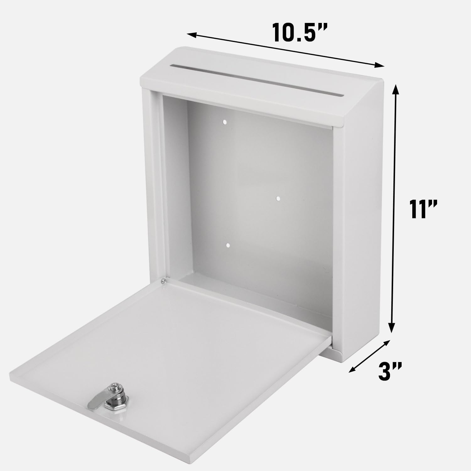 Suggestion Box with Lock and Slot, Wall Mounted Metal Drop Box with 4 Keys, Secure Locking Box for Cash and Ballots, Office MailBox, 10.4 x 2.9 x 11 Inch, White