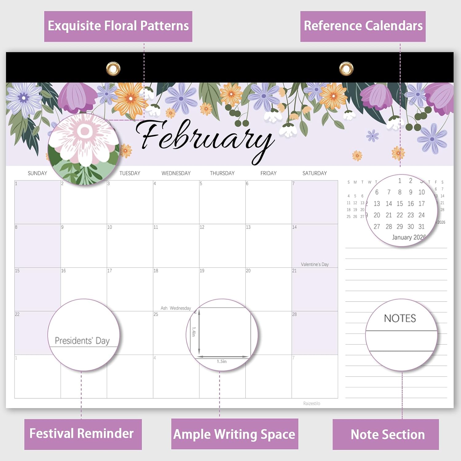 - Dual-Function Design: Desk or Wall Use— Transition seamlessly between desktop and wall display! The large calendar 2025-2026 includes pre-punched holes and a detachable hanging cord, offering flexible placement. Perfect as a desk calendar 2025-2026 for office use or an eye-catching wall calendar for home decor.