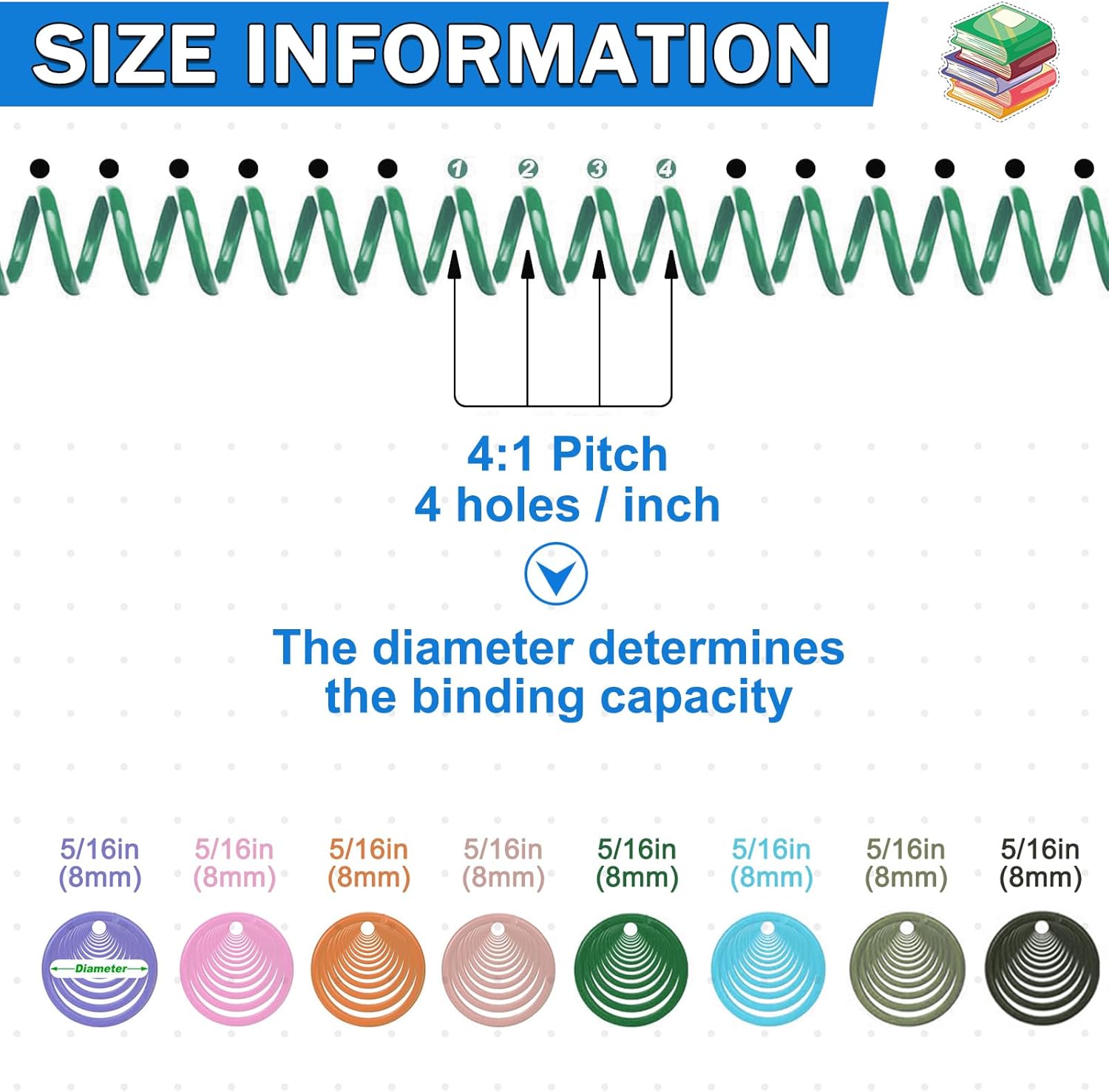 - 【4:1 Pitch & 48 Loops】Spiral Binding Coils (48 loops) are designed with a 4:1 pitch, fit any 4-holes-per-inch coil-binding machine, and letter paper is 8.5 x 11.0 inches. It helps to combine the report pages, calendars, documents, and more, providing much convenience to daily work or study. Their 4:1 pitch matches the 4-holes-per-inch punching pattern on the side of your book.