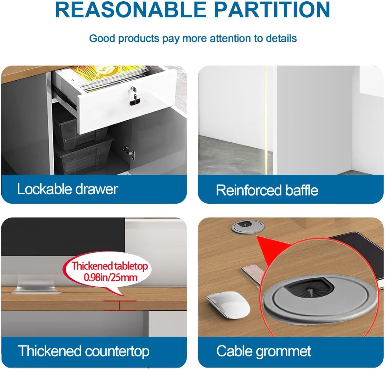 - No Assembly Required Reception: Start using your receptionist desk white reception desk immediately, as this reception counter arrives fully assembled. Enjoy a seamless experience with no need for tools or complicated instructions just unbox and place it in your office