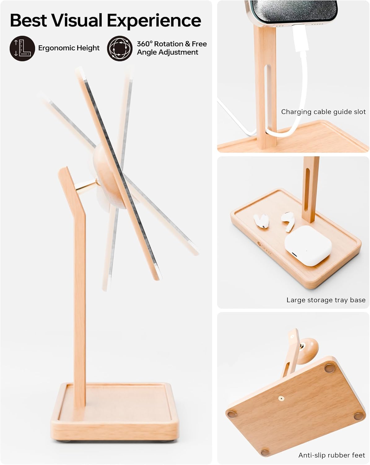 - FULL 360° ADJUSTABLE VIEWING ANGLES | Customize your setup with one-hand 360° rotation . The engineered metal ball joint allows you to smoothly position your phone for the perfect angle for FaceTime, streaming, or look in the mirror. The ergonomic design ensures a perfect view, reducing neck and eye strain.