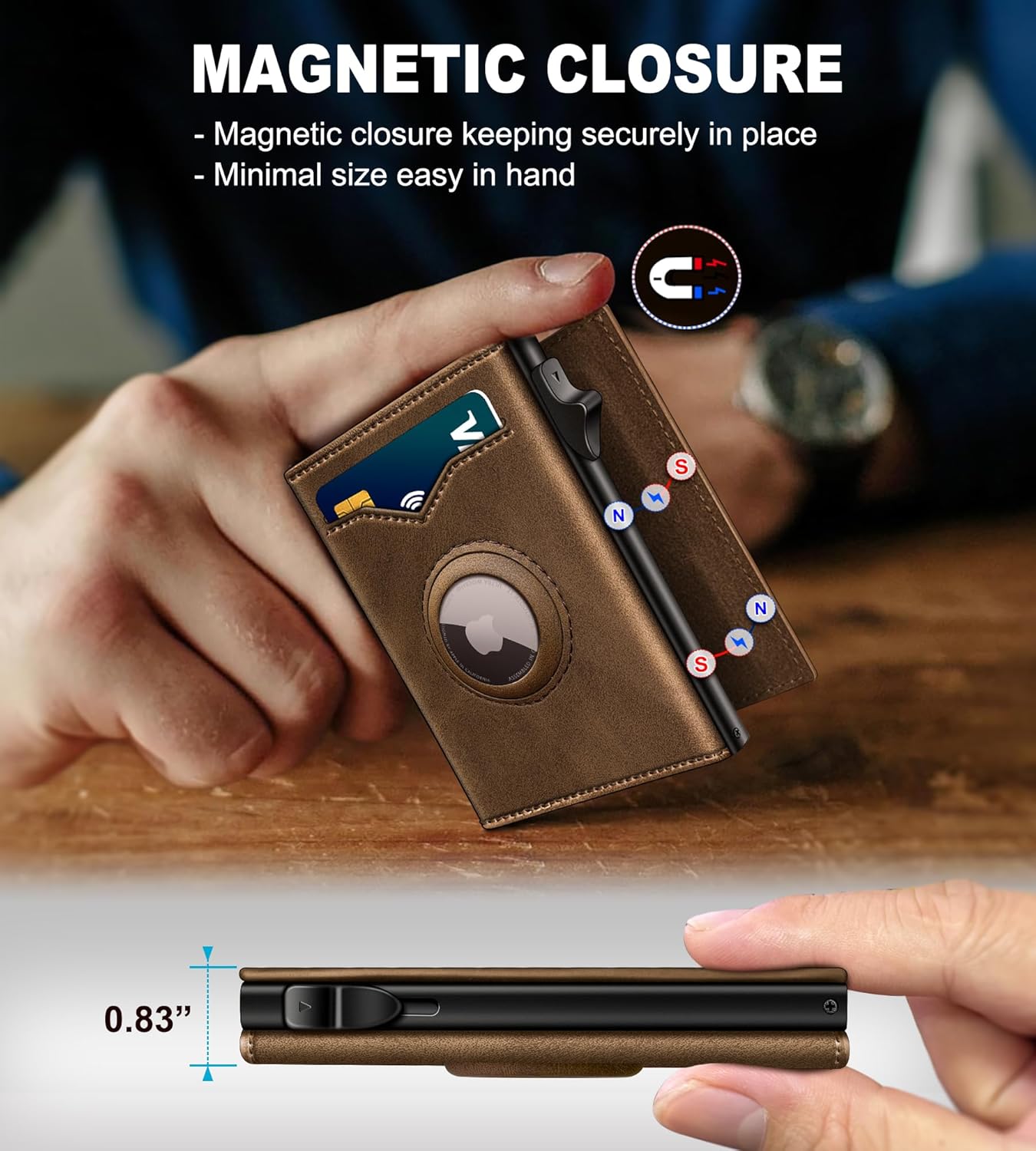 - MAGNETIC CLOSURE--This men’s minimalist wallet features a strong magnetic closure, letting you grab your essentials in an instant—while keeping cards, cash, and valuables securely held, even when you’re on the move.