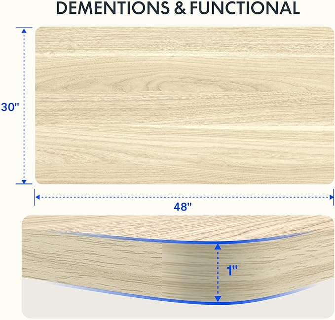 - AMPLE WHOLE-PIECE DESKTOP: With its whole-piece 1β eco-friendly desktop, this standing desk provides plenty of room for your computer setup, documents, and accessories, creating a well-organized and productive work environment. Due to hand measurements, desktop dimensions may vary slightly by 0 to 2β.