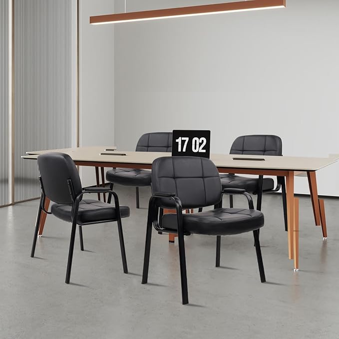 CLATINA Big & Tall 500 lbs Waiting Room Guest Chair, Leather Office Reception Chair No Wheels with Padded Arms for Elderly Home Desk Conference Room Lobby Side Salon Clinic, Black(6 Pack)