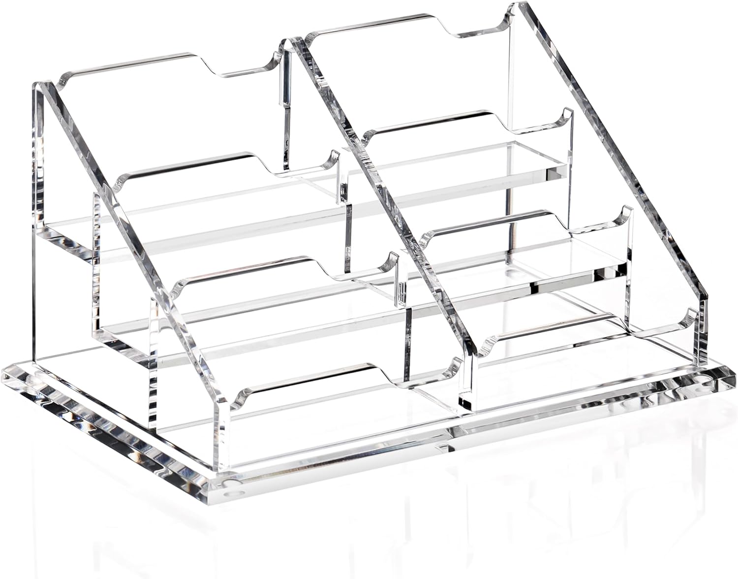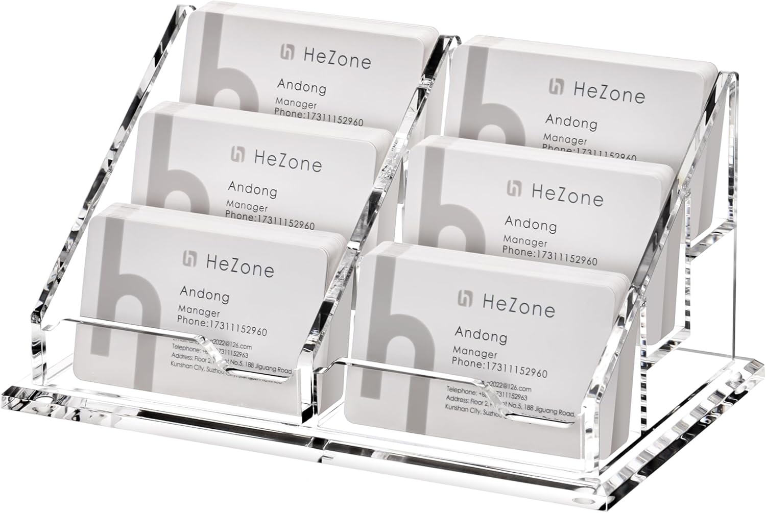 Business Card Holder for Desk, Acrylic Business Card Organizer , Multiple 6 Slots 3 Tier Business Cards Stand for Women& Men,Office Desk Accessories,Organize 300 Cards-1 Pack(Horizontal,Clear)