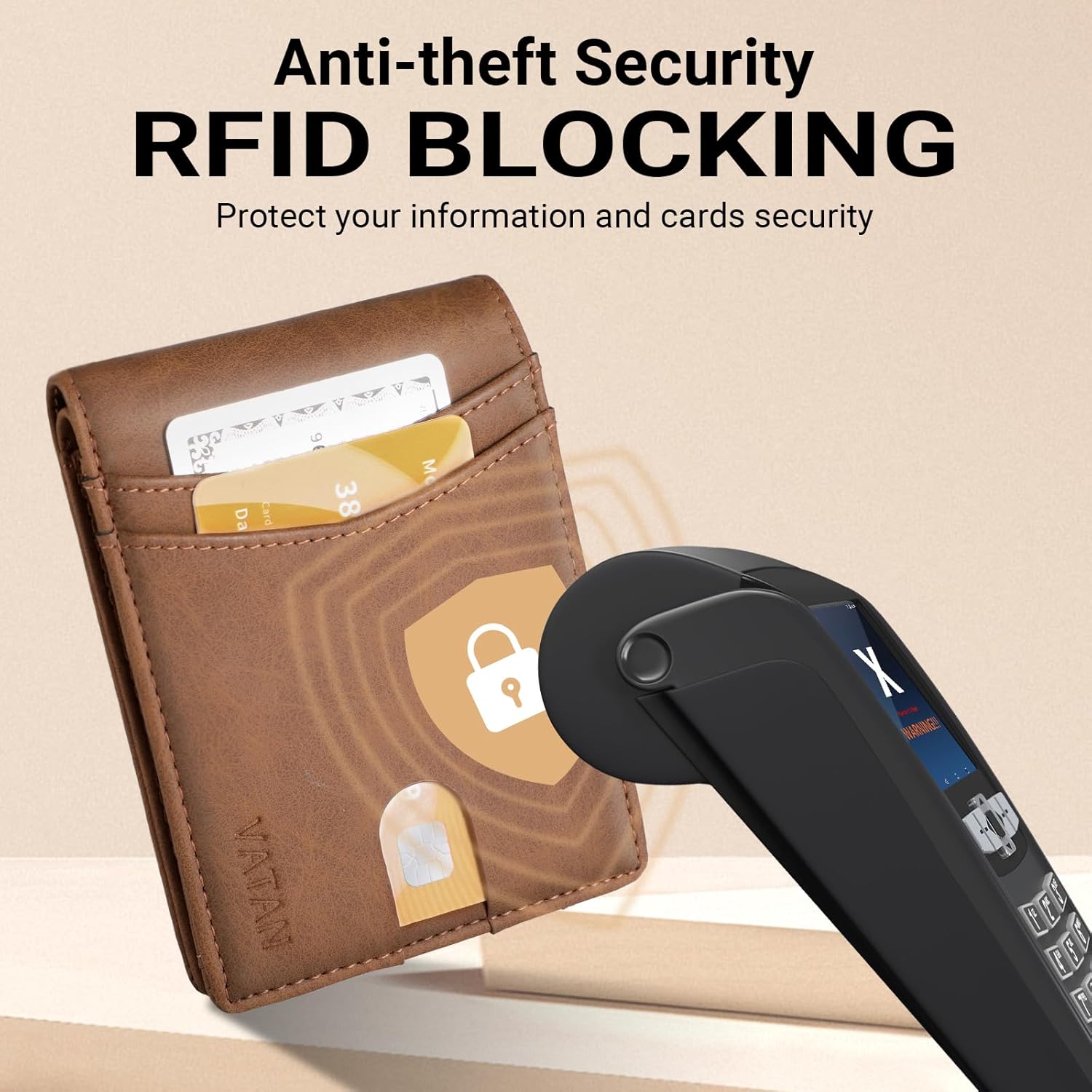 VATAN Wallet for Men, Mens Minimalist Wallet Credit Card Holder, Slim Leather Rfid 2 ID Window Large Capacity With Gift Box (Crazy Horse Brown)