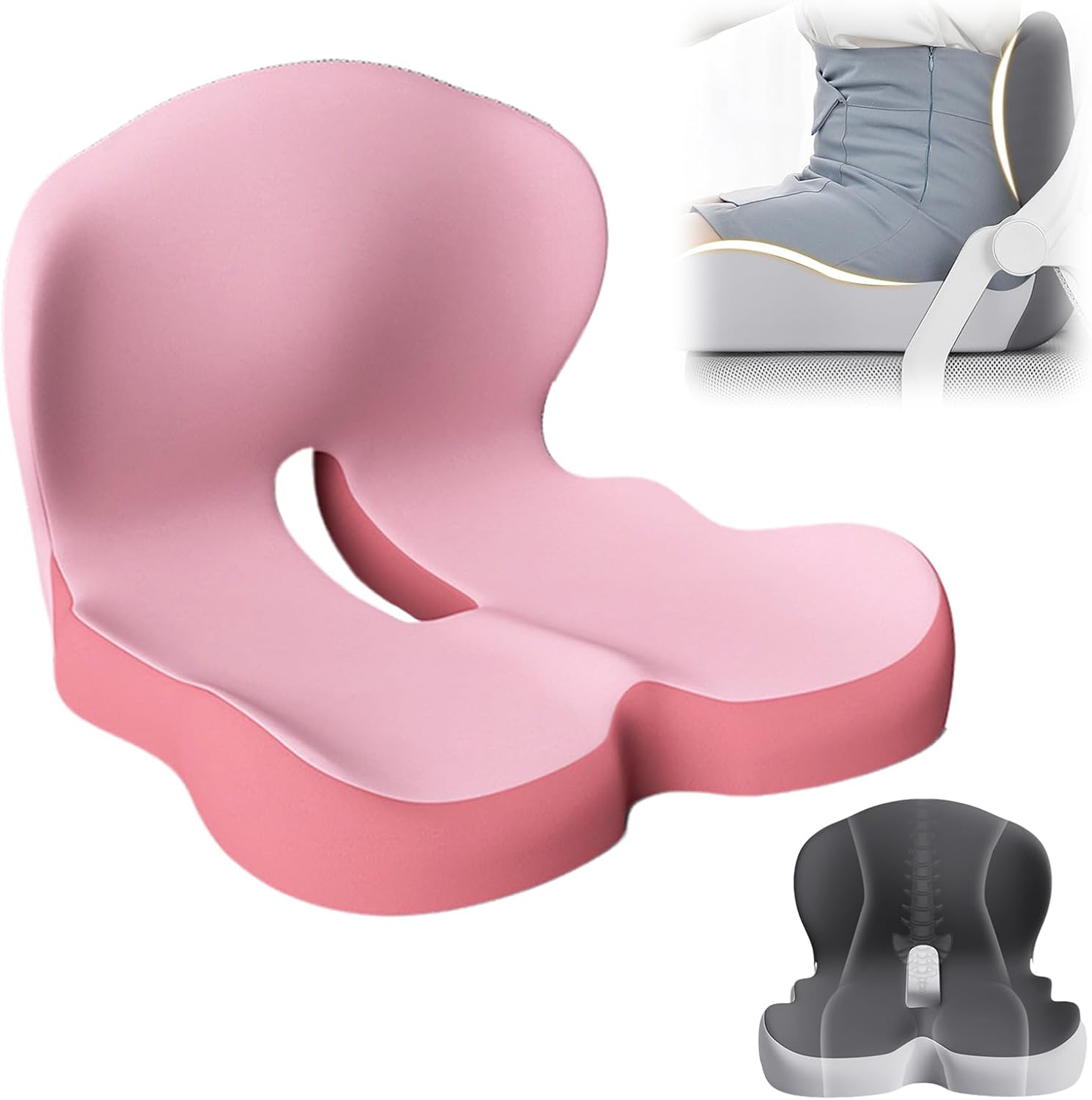 Back and Seat Cushion, 2025 New Ergonomic Non-Slip Memory Foam Seat Cushion with Back Support, L-Shaped Breathable Seat Cushions for Car, Office, Home (Pink)