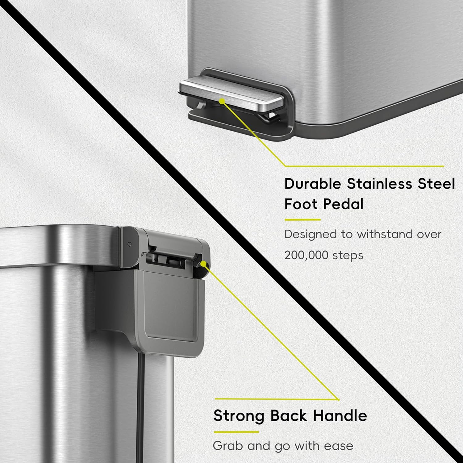 - Durable Pedal Design - The stainless steel foot pedal offers smooth, hands-free operation and is engineered to withstand over 200,000 steps β built for lasting performance in busy households
